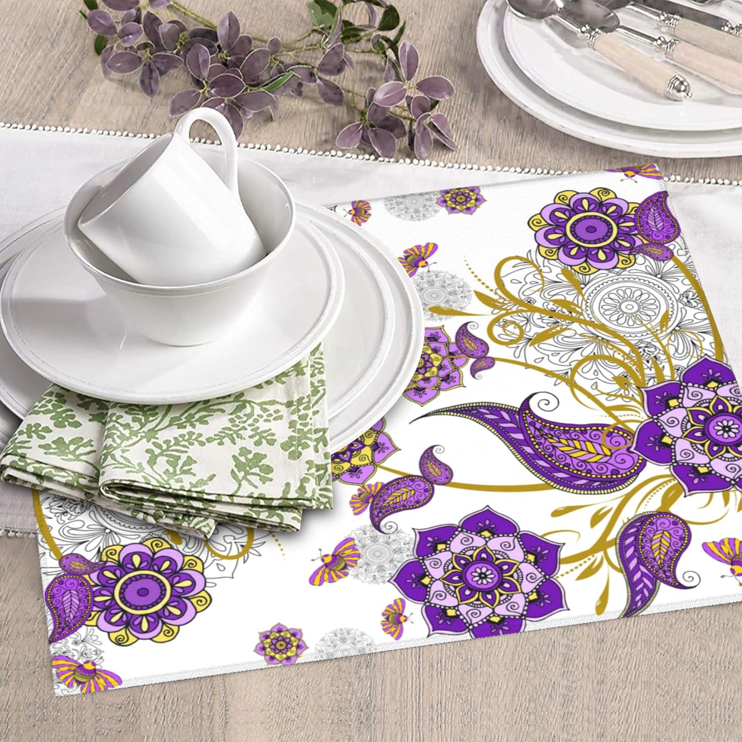 Boho Floral Dish Drying Mat for Kitchen Counter Washable Absorbent Reversible Microfiber Purple Flower Drying Pad Kitchen Accessories 16x18 Inch