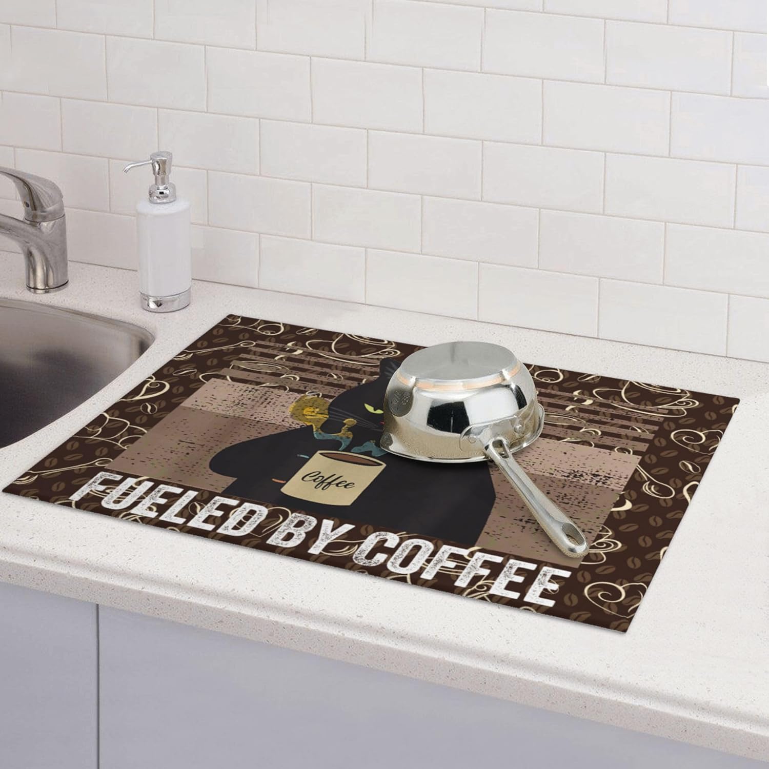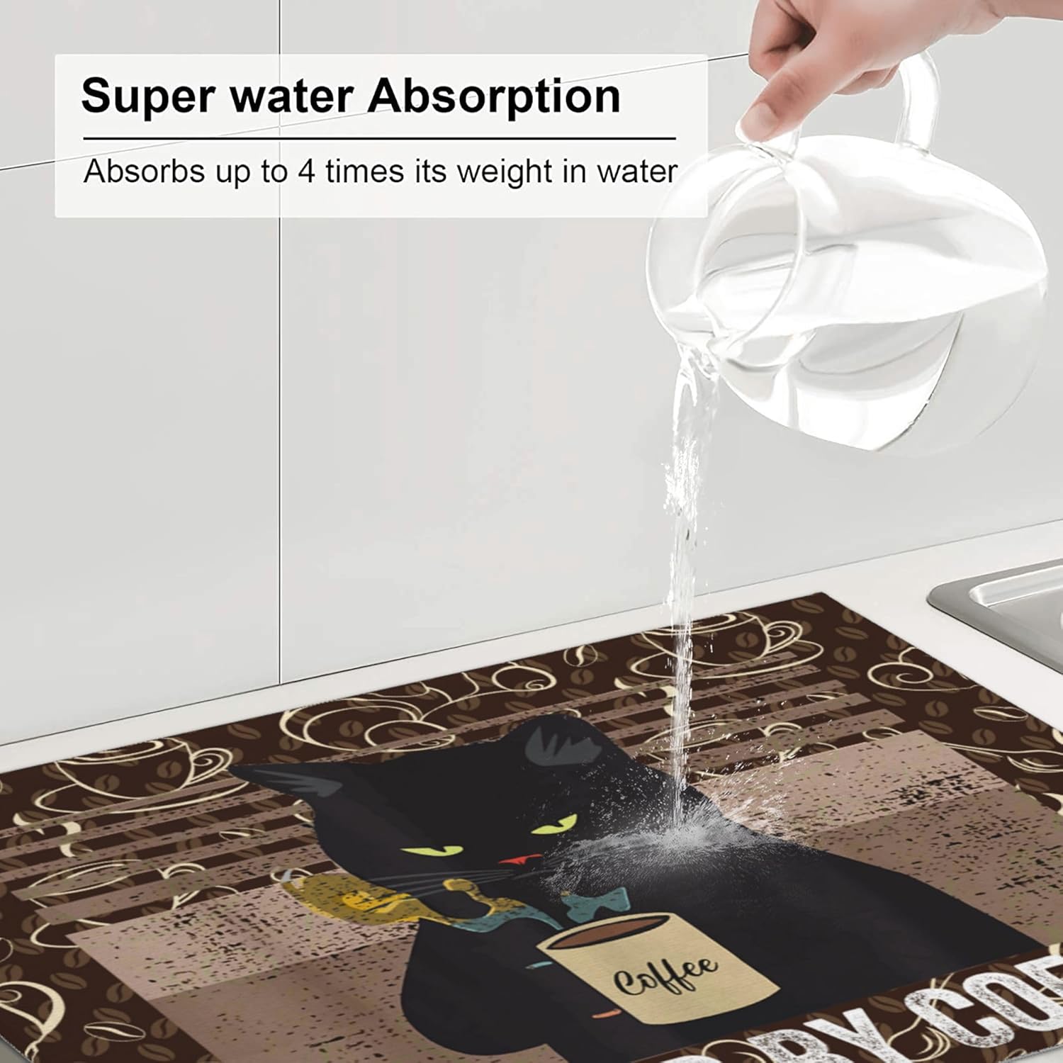 Vintage Cat Dish Drying Mat for Kitchen Counter Absorbent Reversible Retro Coffee Drying Pad Kitchen Decor Dish Drainer Rack Mats 18"x24"