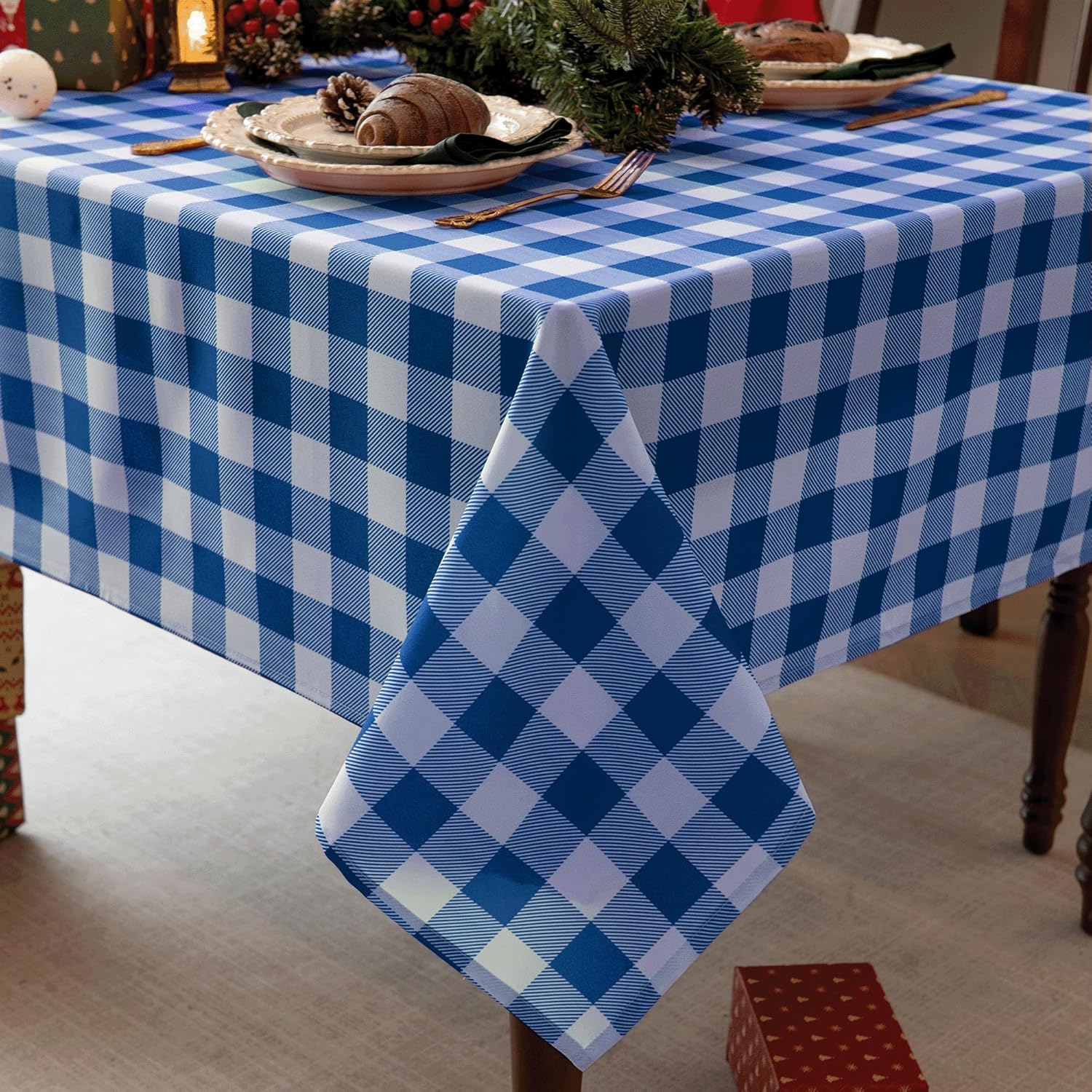 - CLASSIC GINGHAM CHECKERED DESIGN: Our checked tablecloth features a pattern of small, evenly spaced checks in two contrasting colors, often white and another color. The classic gingham plaid pattern for table cloth is a timeless and versatile choice