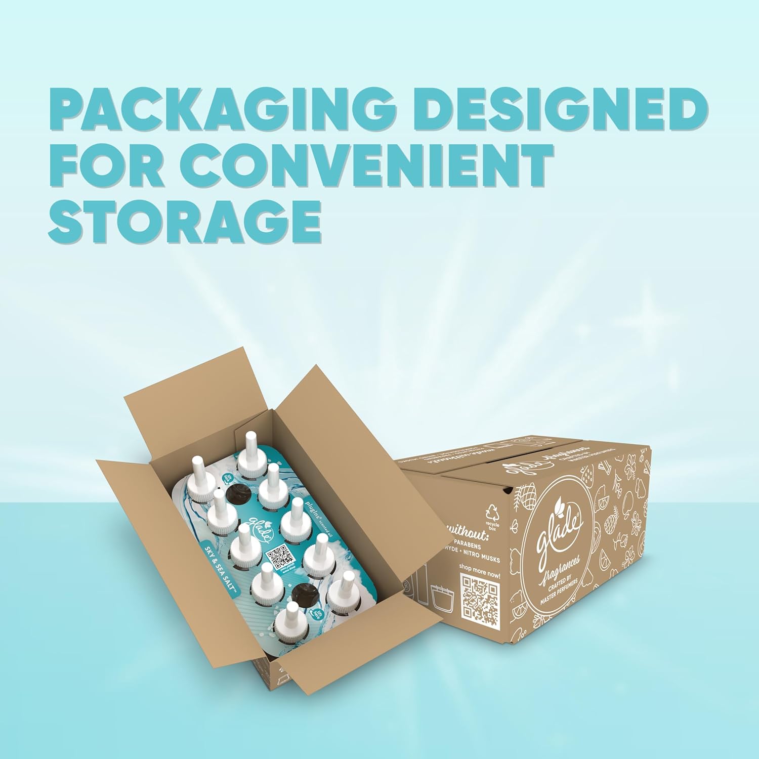 Glade PlugIns Refills Air Freshener, Sky & Sea Salt, Scented and Essential Oils for Home and Bathroom, 0.67 Fl Oz, 10 Count