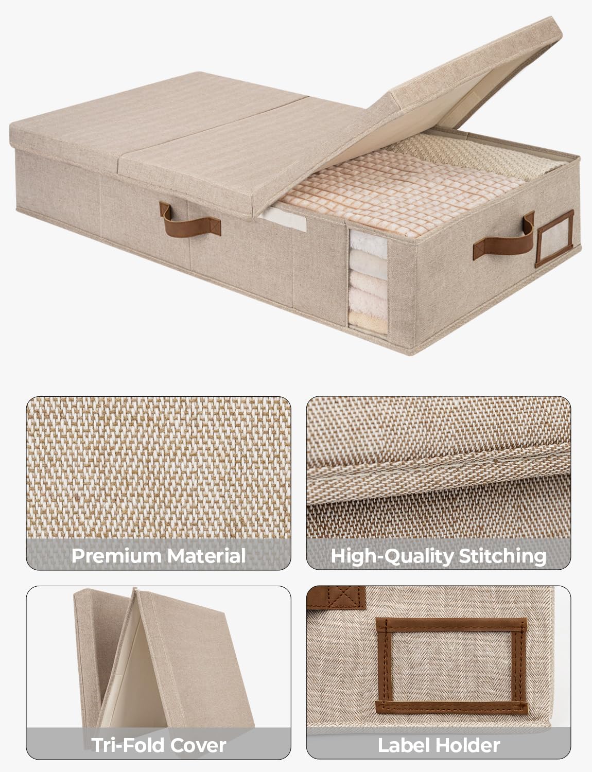 - Foldable: The lid of this underbed organizer can be folded into 3 parts, so the contents can be accessed from both sides for convenience. These storage boxes can also be folded and stored easily when not in use.