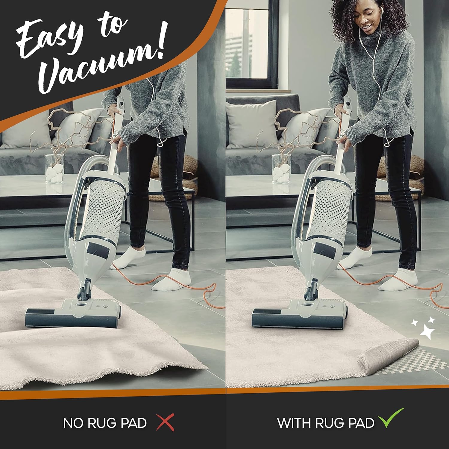 - Floorcare Made Easy: Transform your floorcare routine with our runner rug pad non slip design, crafted to improve airflow & minimize moisture buildup through its open weave structure. The carpet pads non slip design allows fibers to breathe & hold their shape, improving the durability of your carpet or runner. Tackle common issues like uneven floors, curled edges & tripping hazards with confidence using our versatile rug slip pad — ideal for all floor types, including tile, wood, slate & stone!