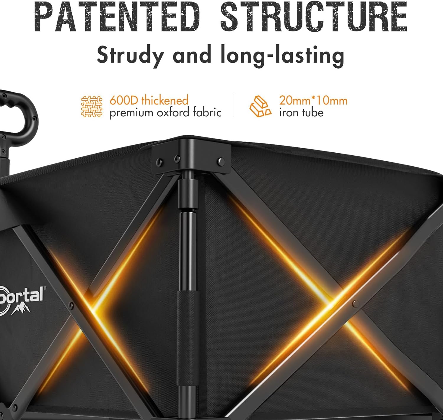PORTAL Collapsible Wagon with Brakes, Heavy Duty Utility Cart with All-Terrain Wheels, Portable Folding Wagons for Camping, Beach, Garden, Shopping, and Groceries