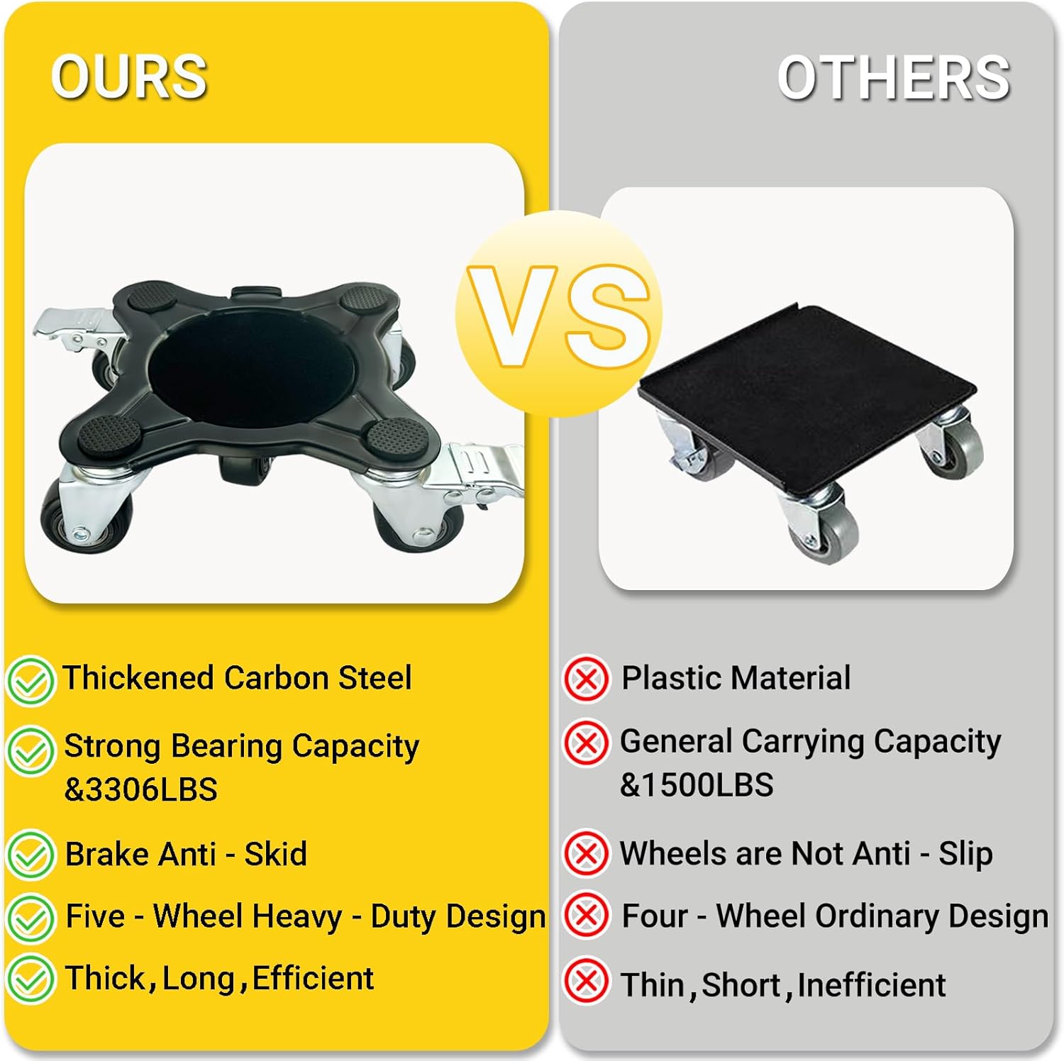 - 【5 Wheels Design & 360° Rotation with Brake】Compared to the furniture dolly with 4 wheels, the new furniture dolly has an additional middle wheel that can support heavier-duty furniture. The 360° swivel widened and thickened silent rubber wheels support easy to pull in any direction. 1.6-inch rubber wheels are resistant to wear, corrosion, have a strong load-bearing capacity, and also can absorb shock, and provide silent operation without floor scratches