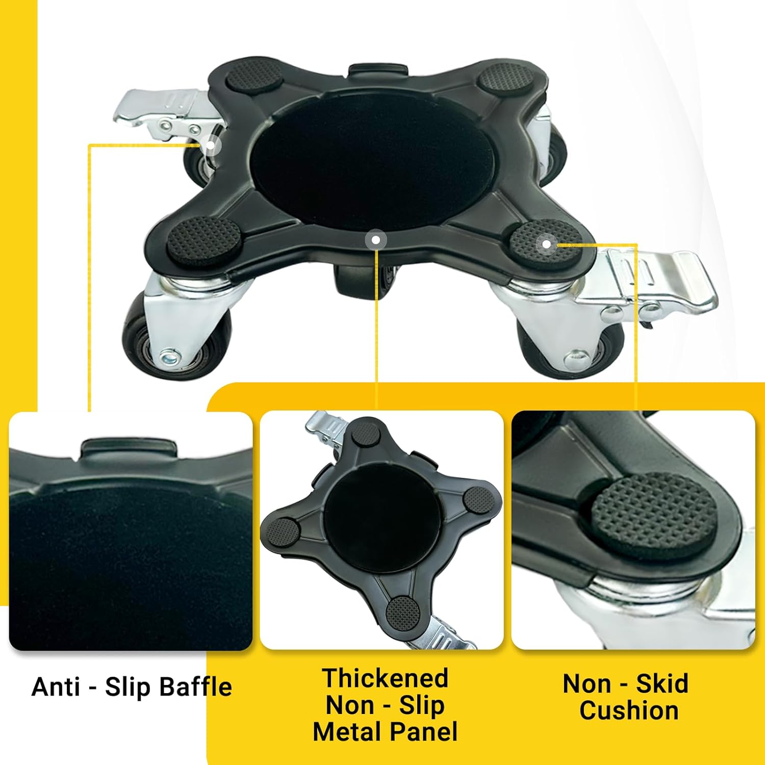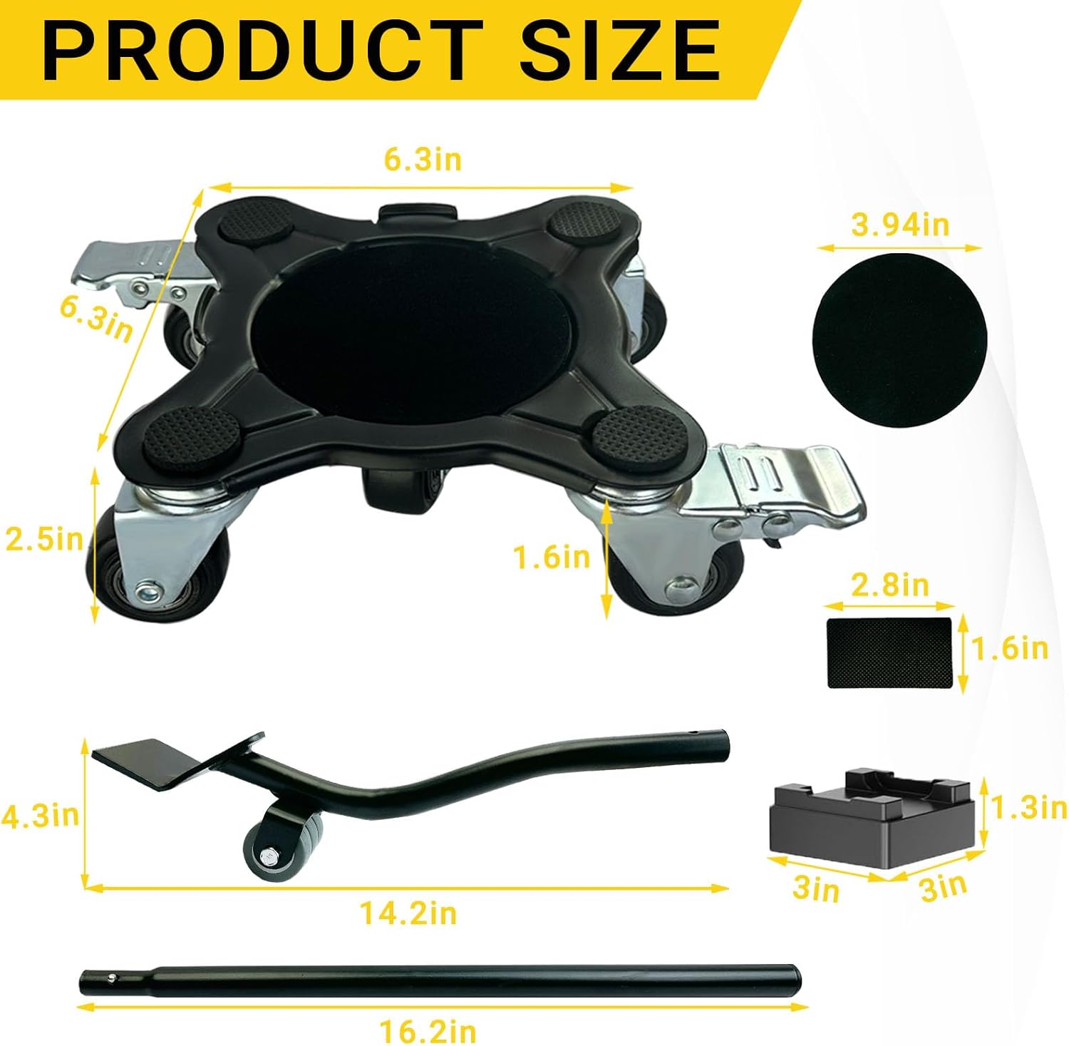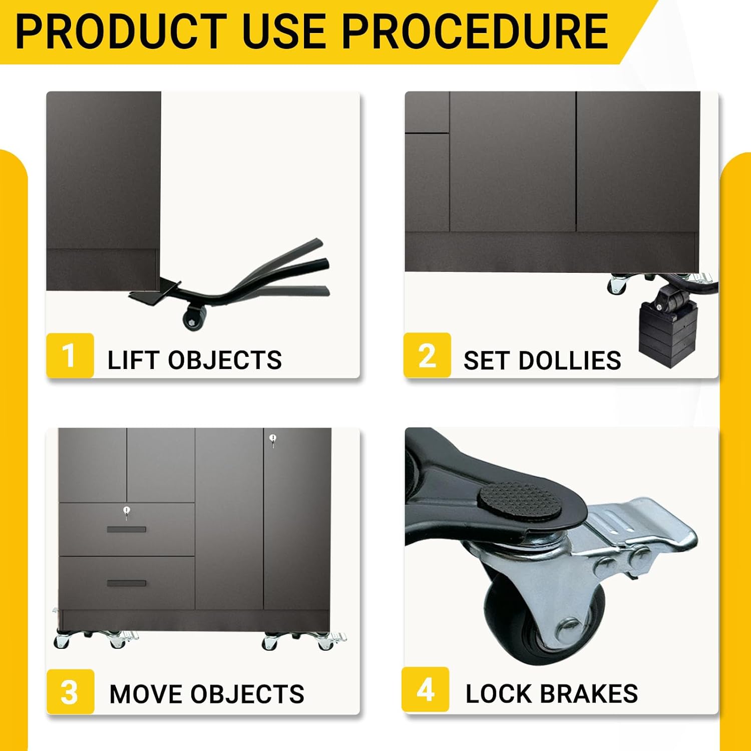 - 【Furniture Dolly Movers】Upgraded version of large panel furniture cart set, including four 6.3 x 6.3-inch Dollies with Brake, 1 Pry Bar with Lock, 4 Heightening Spacers, 4 Flannel Anti-Slip Pads, 2 EVA Anti-Slip Pads, 1 Pair of Gloves