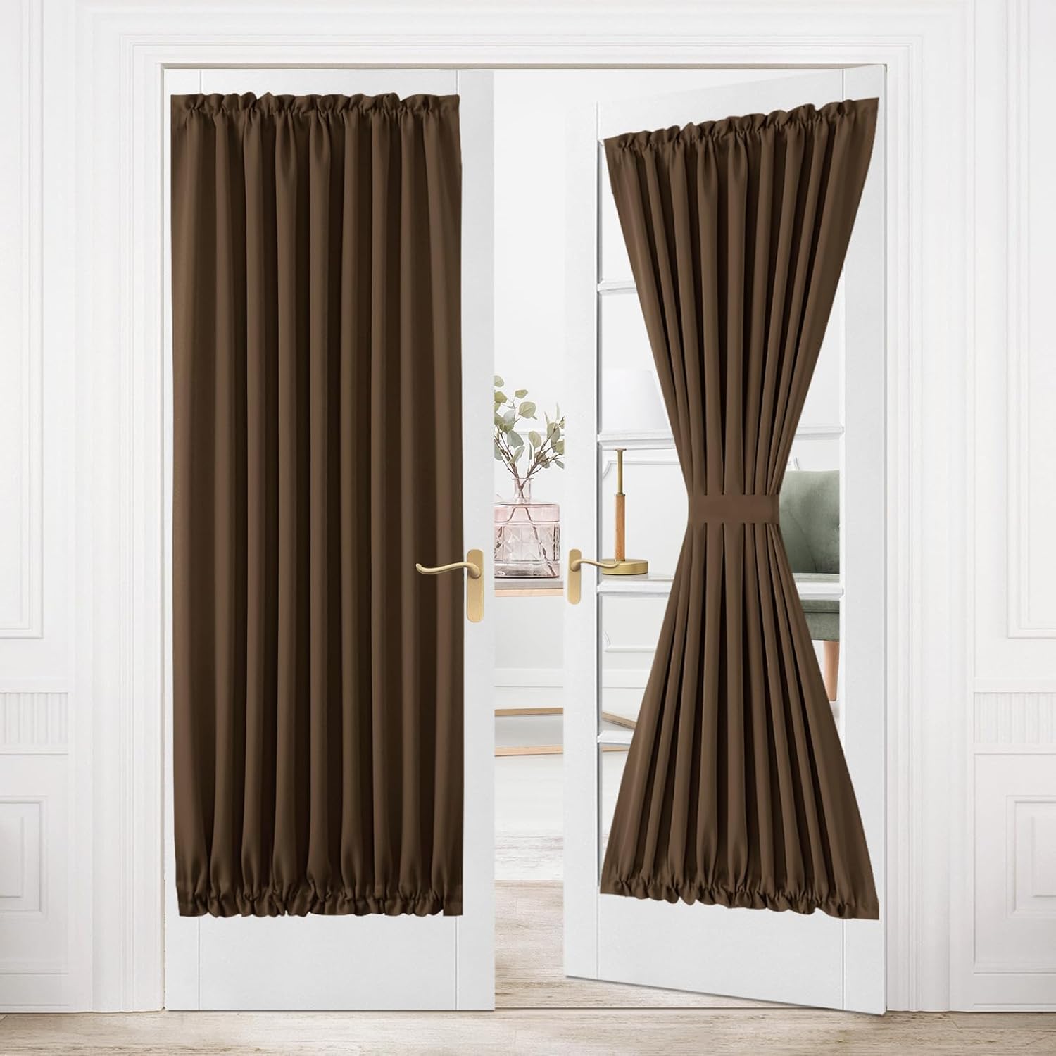 DWCN French Door Curtains – Rod Pocket Thermal Blackout Curtain for Doors with Glass Window, Kitchen and Patio Doors for Privacy, 54 X 80 Inches Long, 1 Curtain Panel with Tieback, Brown