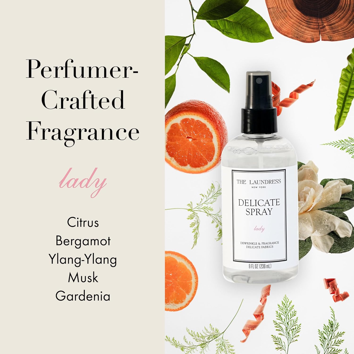 The Laundress Delicate Fabric Spray, Wrinkle Release Spray, Upholstery and Linen Spray, Silk & Lingerie Refresher, Lady Scent, Citrus, Rosewood, Musk, 8 Fl Oz
