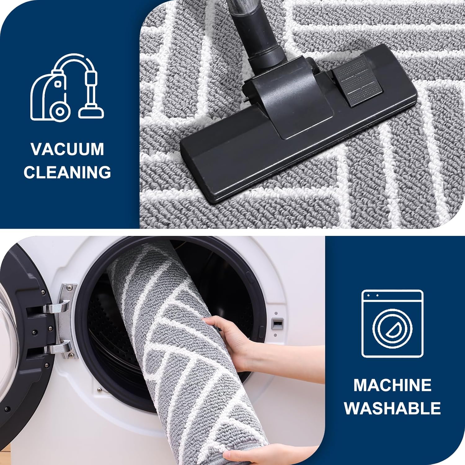 - [EASY CLEANING AND MAINTENANCE]: Cleaning the indoor entrance mat is simple and hassle-free. Easily shake off dirt, or use a broom or vacuum for regular cleaning. For a deeper clean, simply rinse it with a hose or machine wash with cold water.
