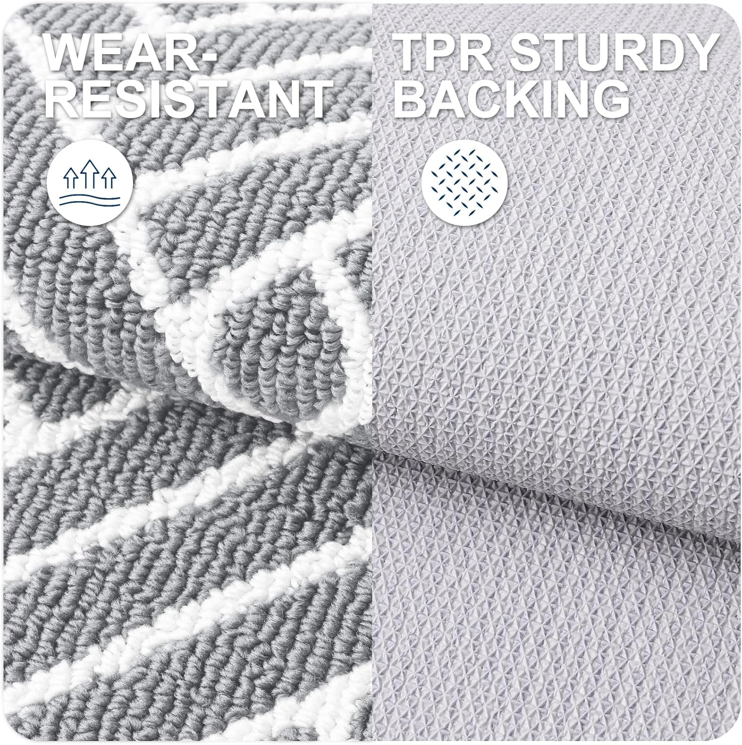 - [TPR BACKING FOR FIRM GRIP]: Featuring a TPR backing, this front and back door mat stays securely in place, even in high-traffic areas like your entryway. For best results, always place it on a dry surface to prevent slipping, especially in damp conditions.