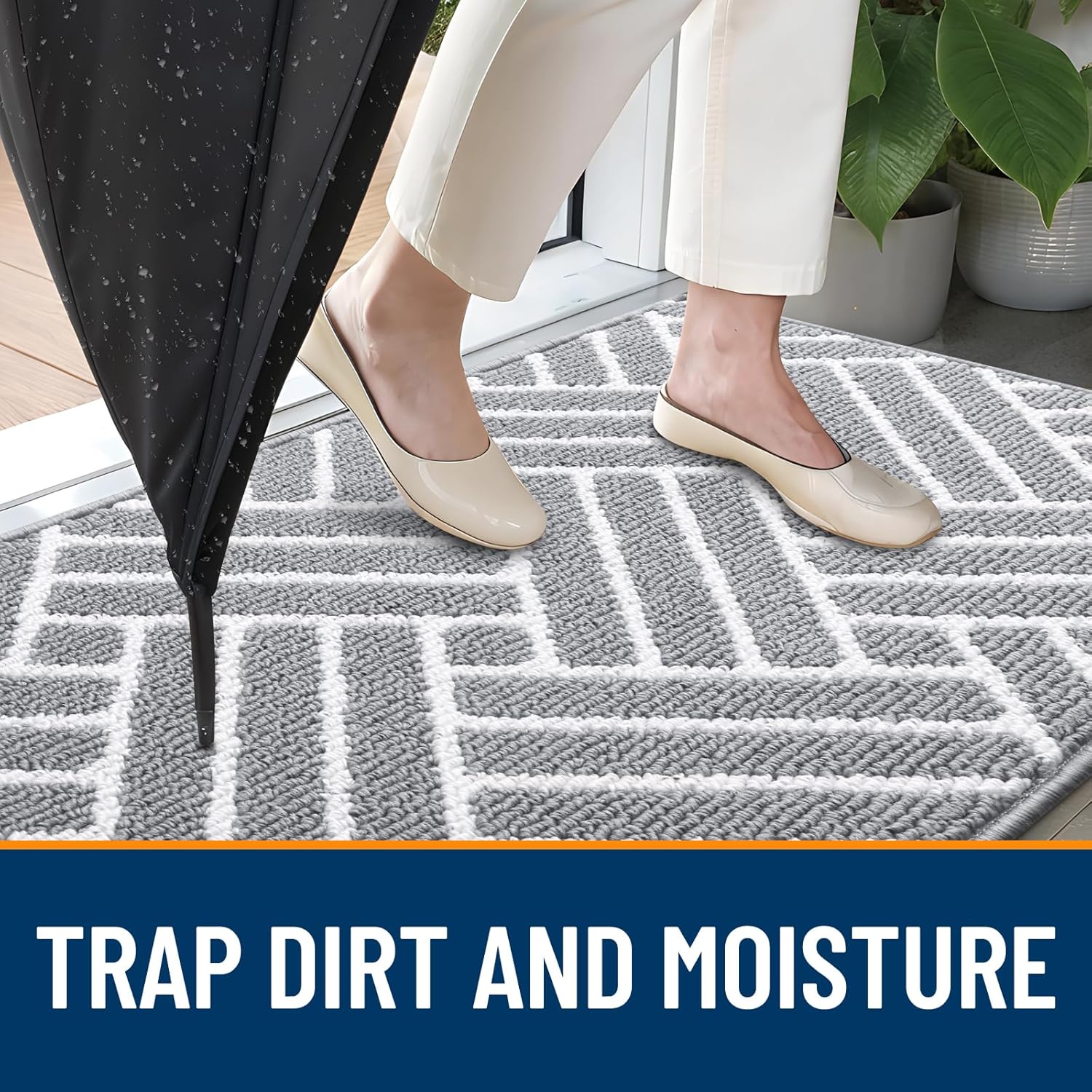 - [LOW-PROFILE DESIGN]: With a sleek geometric pattern, this mat adds a modern touch to your home. Its low-profile design ensures it fits smoothly under your door without obstructing movement, making it the ideal doormat to elevate your home's aesthetic.