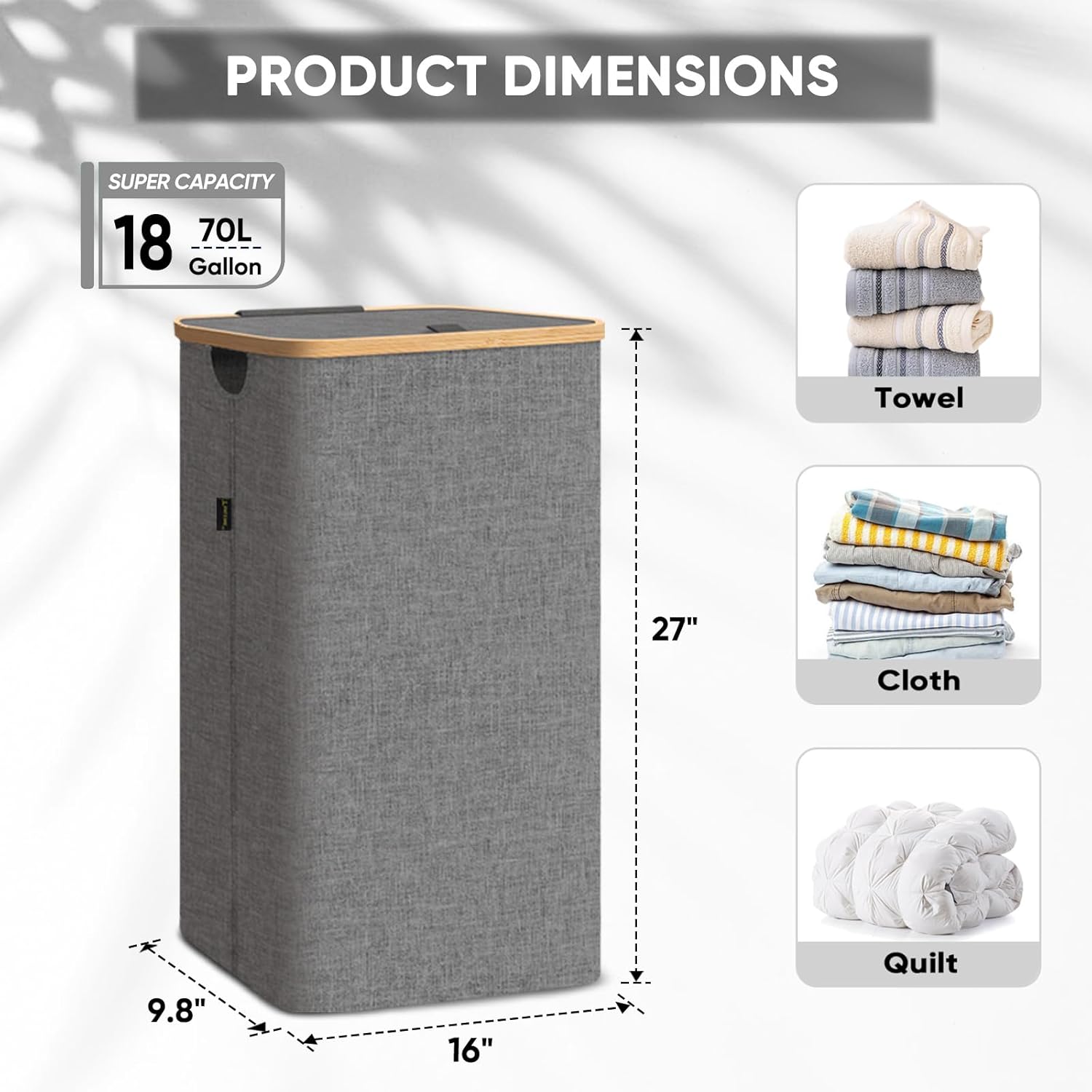 - [AMPLE CAPACITY AND EASY ACCESS] With 18 Gallon/26 Gallon/36 Gallon (70L/100 L/140 L) size option, the hampers for laundry provide ample capacity to hold all your dirty clothes, towels, bedding, and more. The lightweight lid is easy to open and close, providing quick and convenient access to your laundry.