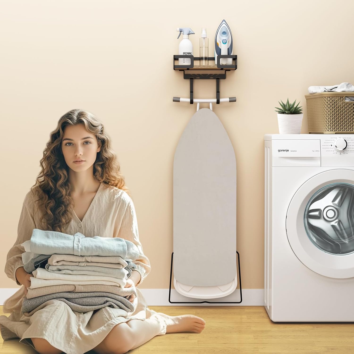 - WIDENED FRAME IS MORE STRONG: The laundry room accessories ironing board are made of iron and natural wood. The wider frame makes it more sturdy and durable with 2 wider hooks. It creates a rustic and modern style while keeping your storage items safe.