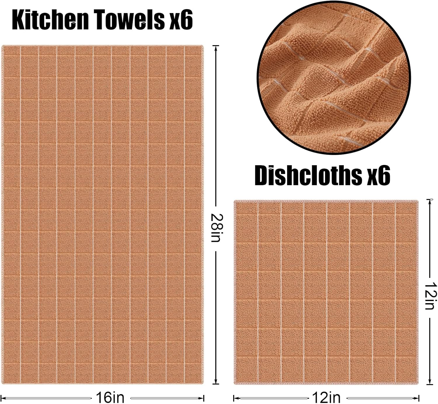 Homaxy Microfiber Kitchen Towels and Dishcloths Set, 12 Pack Soft and Absorbent Dish Hand Towels Bulk, 28 x 16 Inch & 12 x 12 Inch Quick Drying Rags for Washing Dishes, Camel