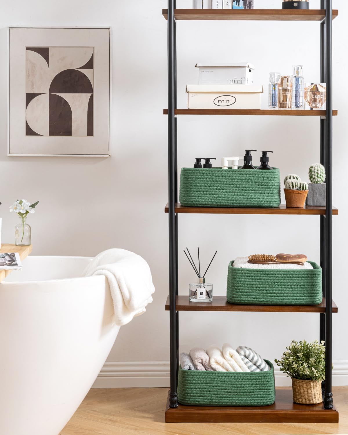 Small Woven Basket, 13.5 x 9.5 x 5 Inches, Storage Basket for Organizing, Cute Small Rope Shelf Closet Cube Storage Bins Baskets for Shelves, Dog Toy Gift Baskets Empty, 3 Pack, Green