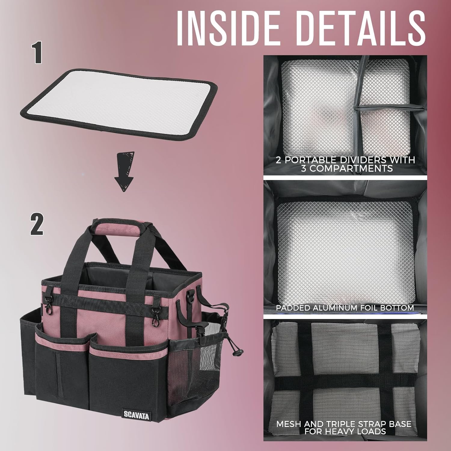- Customizable Internal Layout: The wearable cleaning caddy bag comes with 2 adjustable dividers, allowing you to arrange the inner compartments to fit various cleaning tools and supplies. The aluminum foil pad on the bottom keeps contents dry and fresh by preventing moisture, grime, and unpleasant odors from affecting stored items.