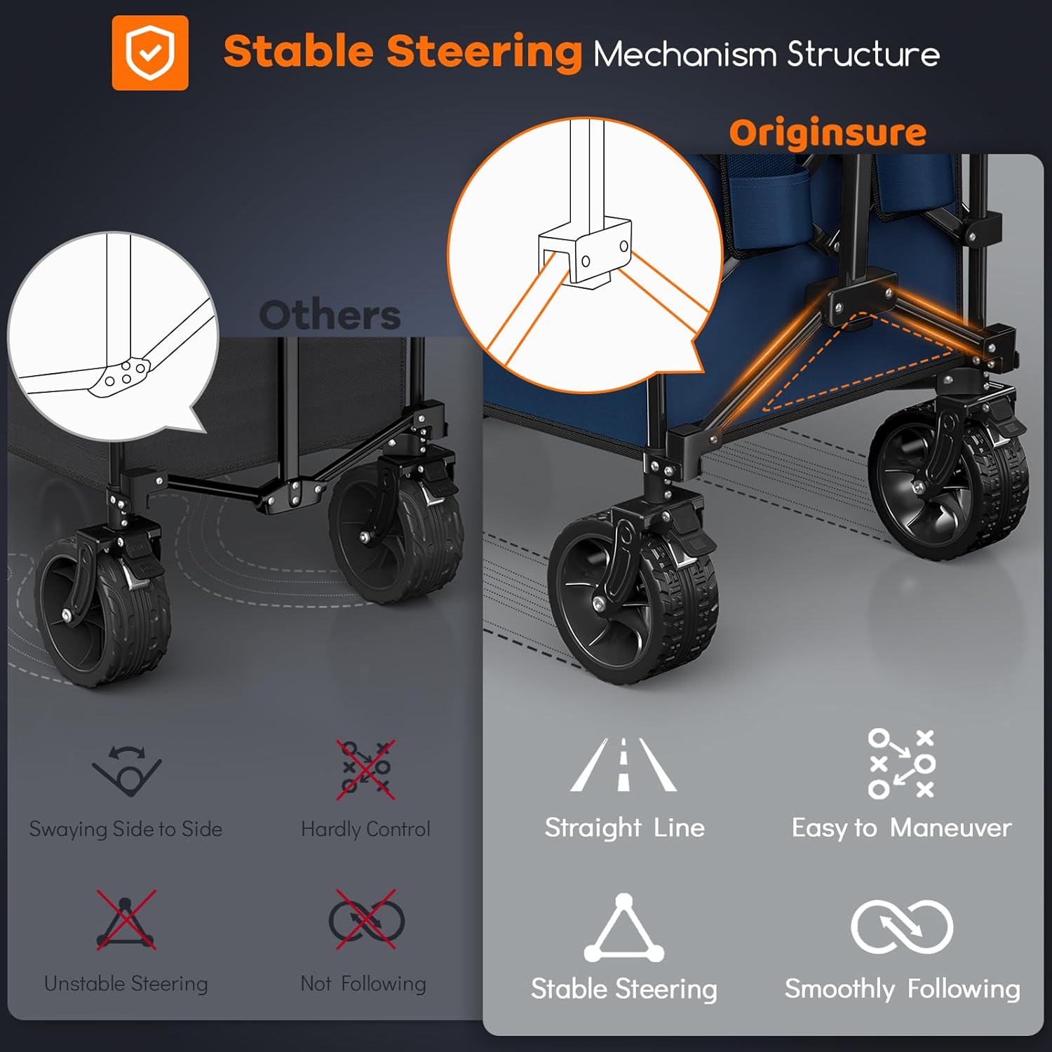 - ใ๐ณ.๐ฒ๐ต ๐ฐ๐ ๐ณ๐ ๐๐ฎ๐ฟ๐ด๐ฒ ๐๐ฎ๐ฝ๐ฎ๐ฐ๐ถ๐๐ ๐๐ถ๐๐ต ๐ฆ๐บ๐ฎ๐น๐น๐ฒ๐ฟ ๐๐ผ๐น๐ฑ๐ฒ๐ฑ ๐ฆ๐ถ๐๐ฒ ๐ฃ๐ผ๐ฟ๐๐ฎ๐ฏ๐น๐ฒ ๐๐ผ๐น๐น๐ฎ๐ฝ๐๐ถ๐ฏ๐น๐ฒ ๐๐ฒ๐ฎ๐ฐ๐ต ๐ช๐ฎ๐ด๐ผ๐ปใOriginsure foldable wagon cart, 37.40 "L x 24.21 "W x 24.00 "H large unfolding size, 7.69 cu ft/220L massive storage space, double the capacity of similar wagons. Adopting an innovative folding design that maintains its height, the Capacity reduces to 1.36 cu ft when folded, only 1/3 of other carts. Compact and space-saving, it can be perfectly stored in the car trunk and room corners.