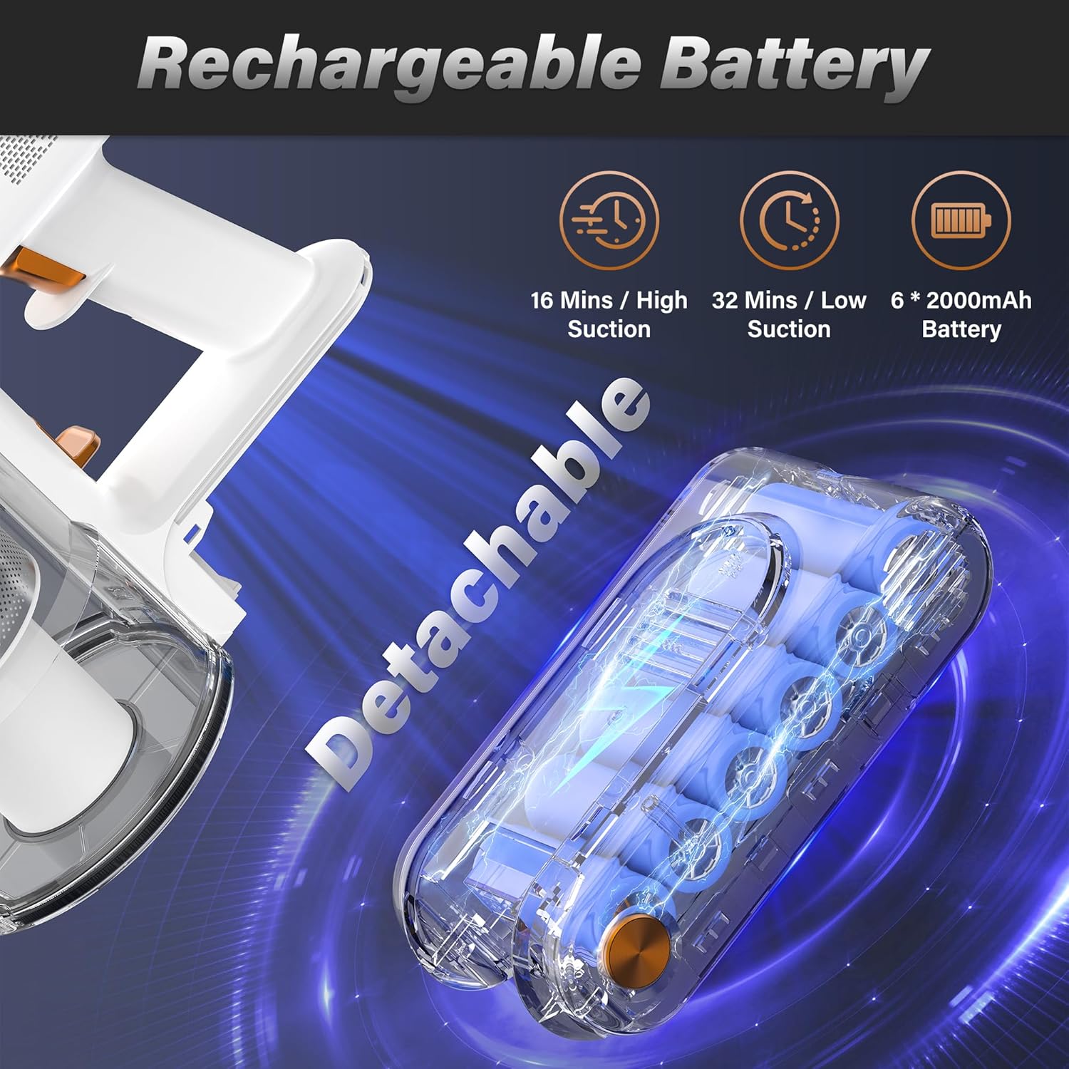 - Wall-Mounted Charging Dock: Featuring a 6*2000 mAh rechargeable battery and a wall-mounted charging station, this cordless vacuum cleaner offers versatile charging options. You can detach the battery for separate charging or place the vacuum on the dock for automatic charging and convenient storage