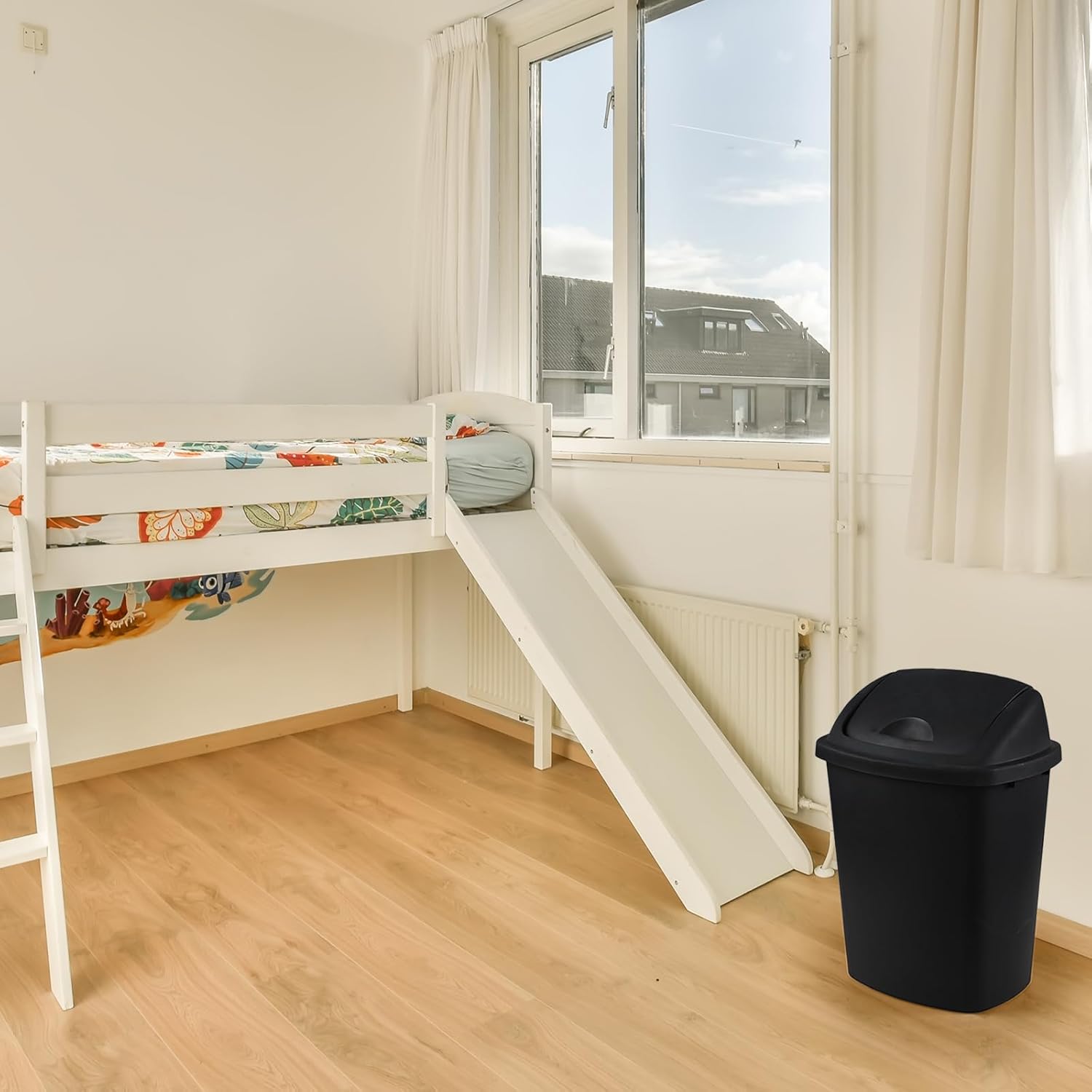 6 Gallon Plastic Garbage Cans with Swing Lid, 4-Pack Swing Lid Trash Bins, Black