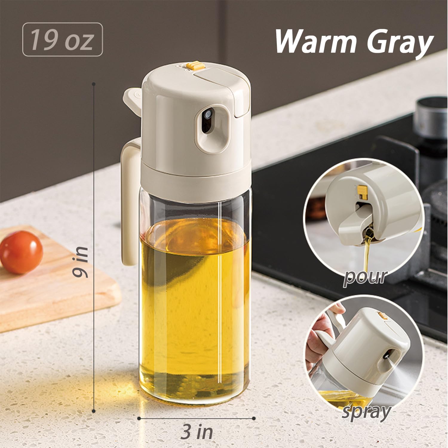 2 in 1 Glass Oil Sprayer and Dispenser for Kitchen, 550ml Olive Oil Bottle, Leakproof Food-Grade Oil Mister & Pourer for Air Fryer, BBQ, Salad, Baking