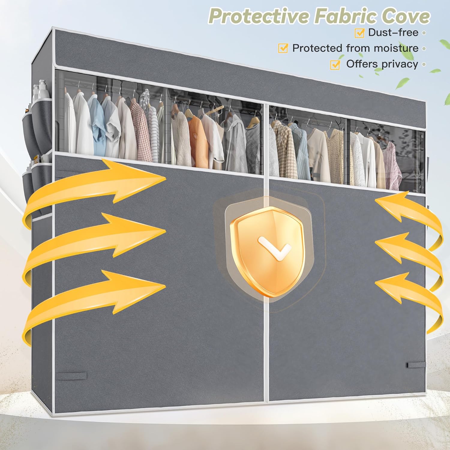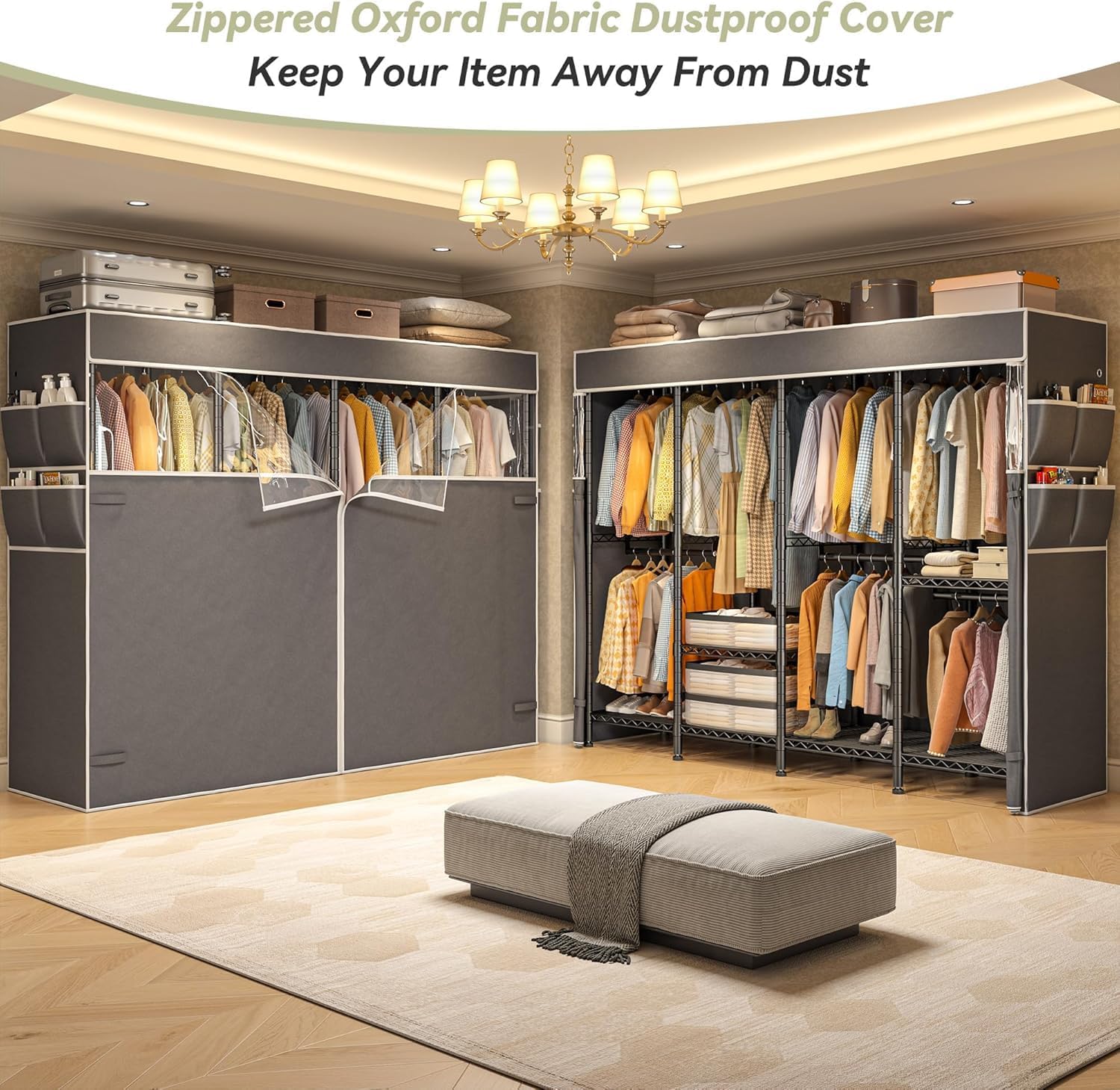 - 【Protective Fabric Cover】The cover is made of high-density fabric, the zipper design not only makes your store items easy but also keeps your item away from dust, and offers privacy while maintaining a neat appearance. Side pockets for storing more sundries.
