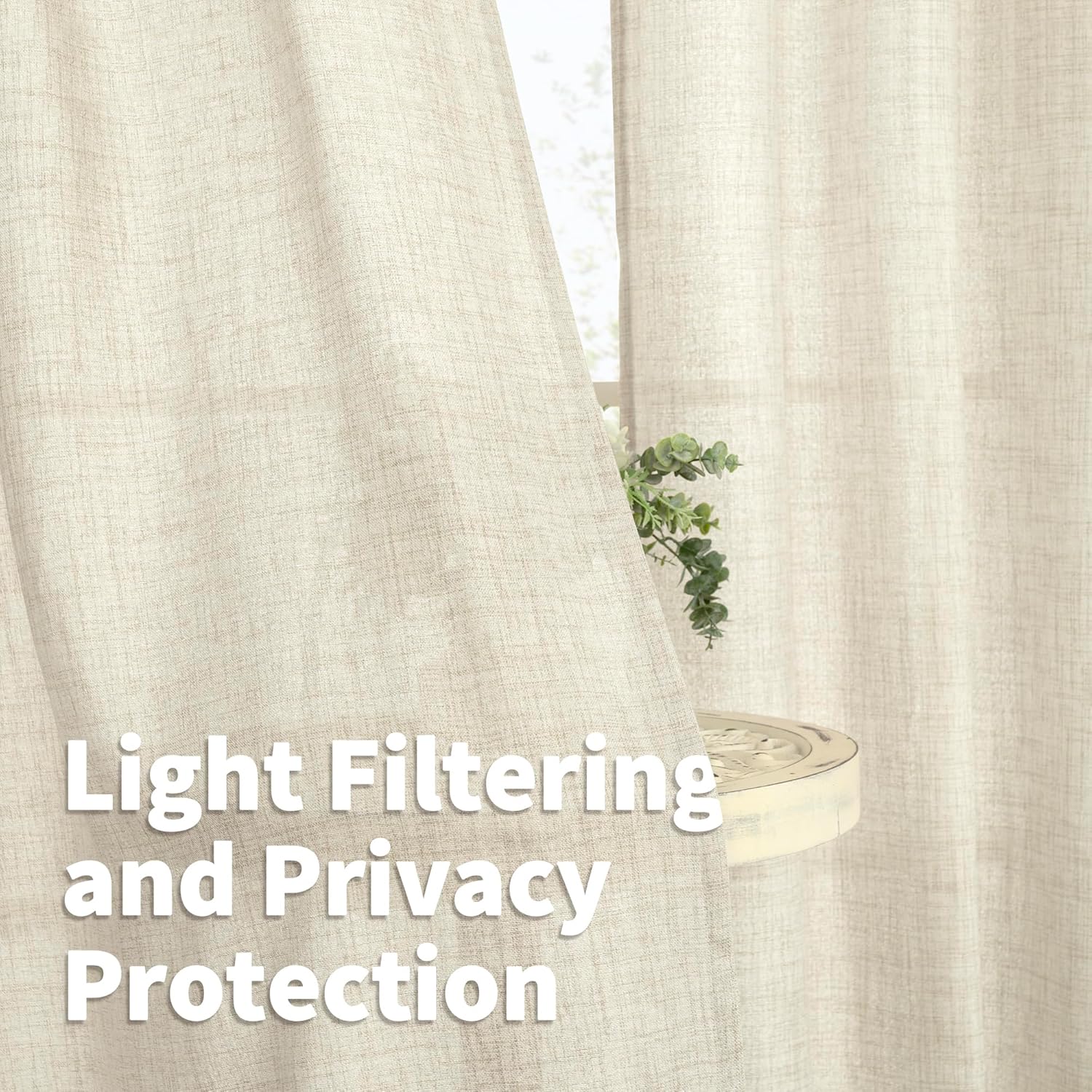 - Privacy Protection: Different from ordinary sheer drapes, our curtains are woven with a firmer and thicker texture that filters harsh light, while nice thickness helps provide privacy. Subtly balancing light and privacy that allow you to enjoy your leisure time.