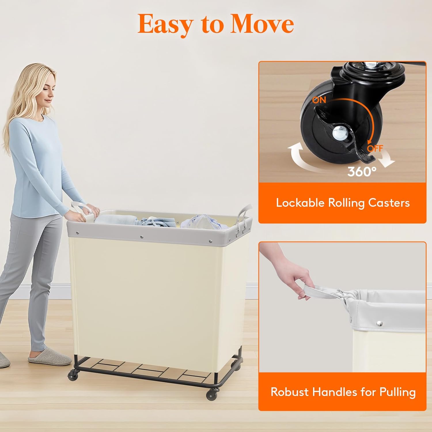 - Chic Design: With its minimalist style and neutral tones, rolling laundry basket combines ample capacity with an elegant appearance; perfect for any home or hotel décor, it effortlessly enhances your space's ambiance