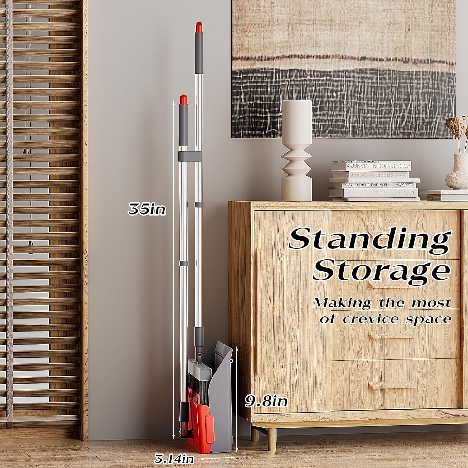 - ADJUSTABLE HANDLE: The dustpan's long handle extends up to 39.3 inches, which not only allows you to stand up straight and sweep comfortably, never having to bend over to dispose of waste again, but also sweeps dust from high or deep corners. DIY height, just remove the middle aluminum rod.Adjustable handle conforms to the height of adults and children.