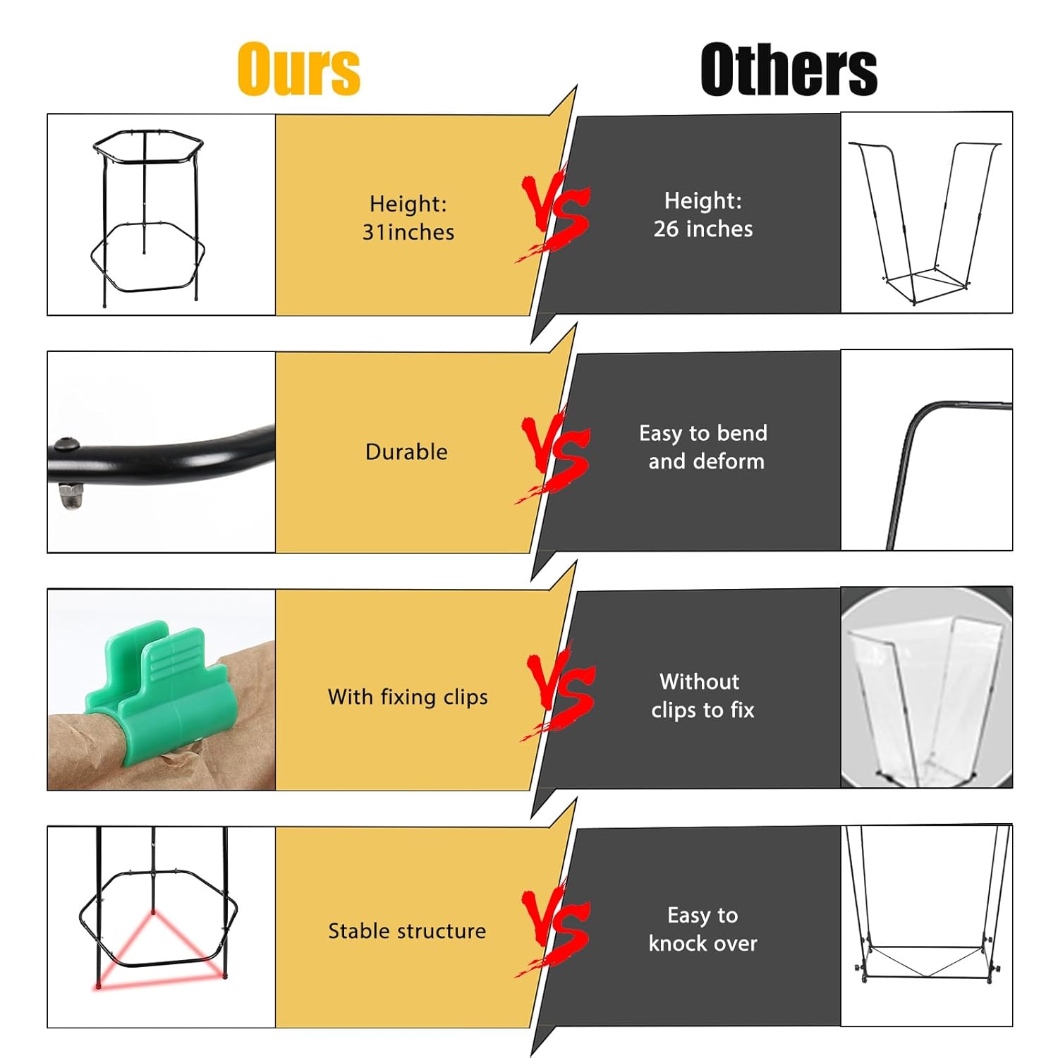 - 【Keep it Clean】Say goodbye to messy outdoor waste disposal with this reliable leaf bag holder for yard work. Garbage holder allows use for simple collection of leaves, yard waste, and recycling while keeping trash bags open for easy disposal.
