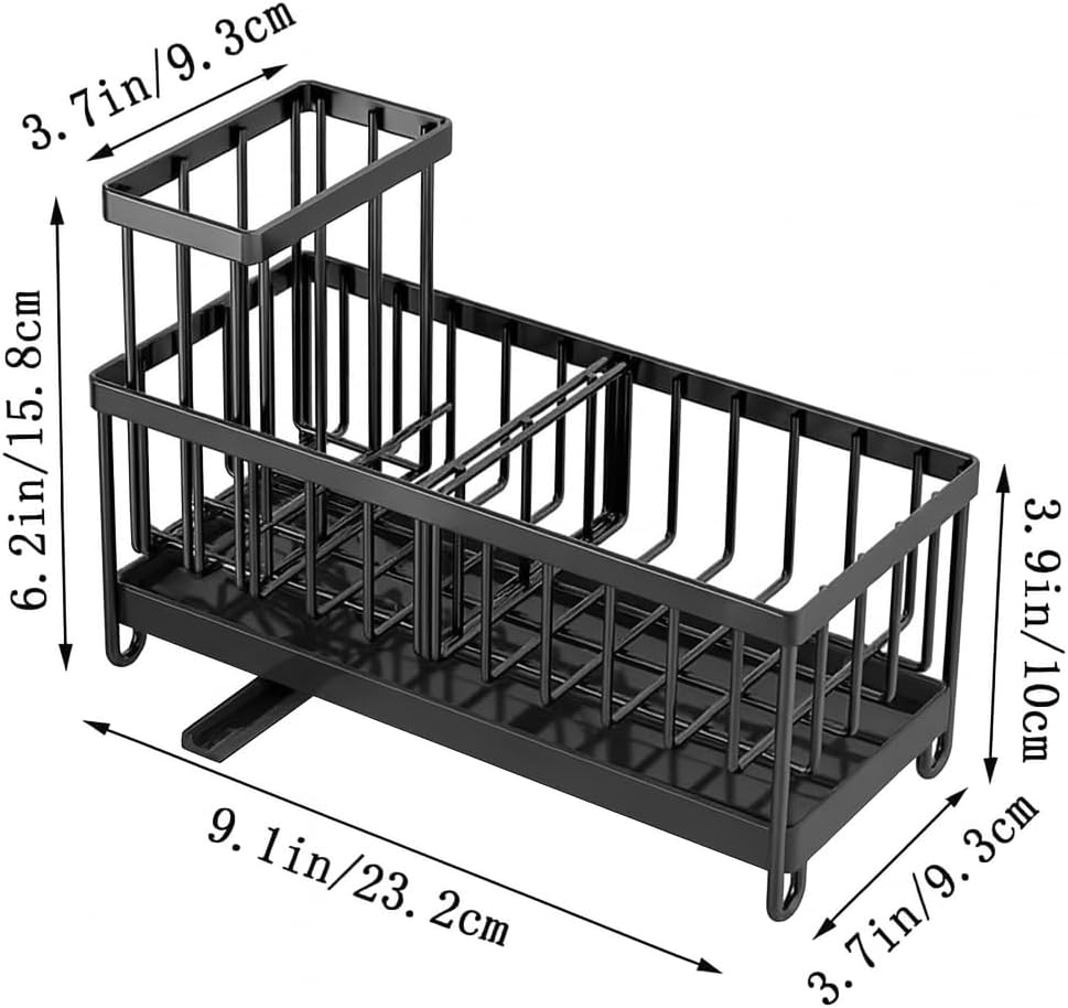 - VERSATILE USE– Ready to use right out of the box, this sink sponge holder requires no installation. Use it on your kitchen countertop, in the bathroom, or near any sink. It’s perfect as a soap and sponge holder, sink brush holder. PACKAGE INCLUDES 1 Black sink caddy for kitchen and 2 Sponge with it