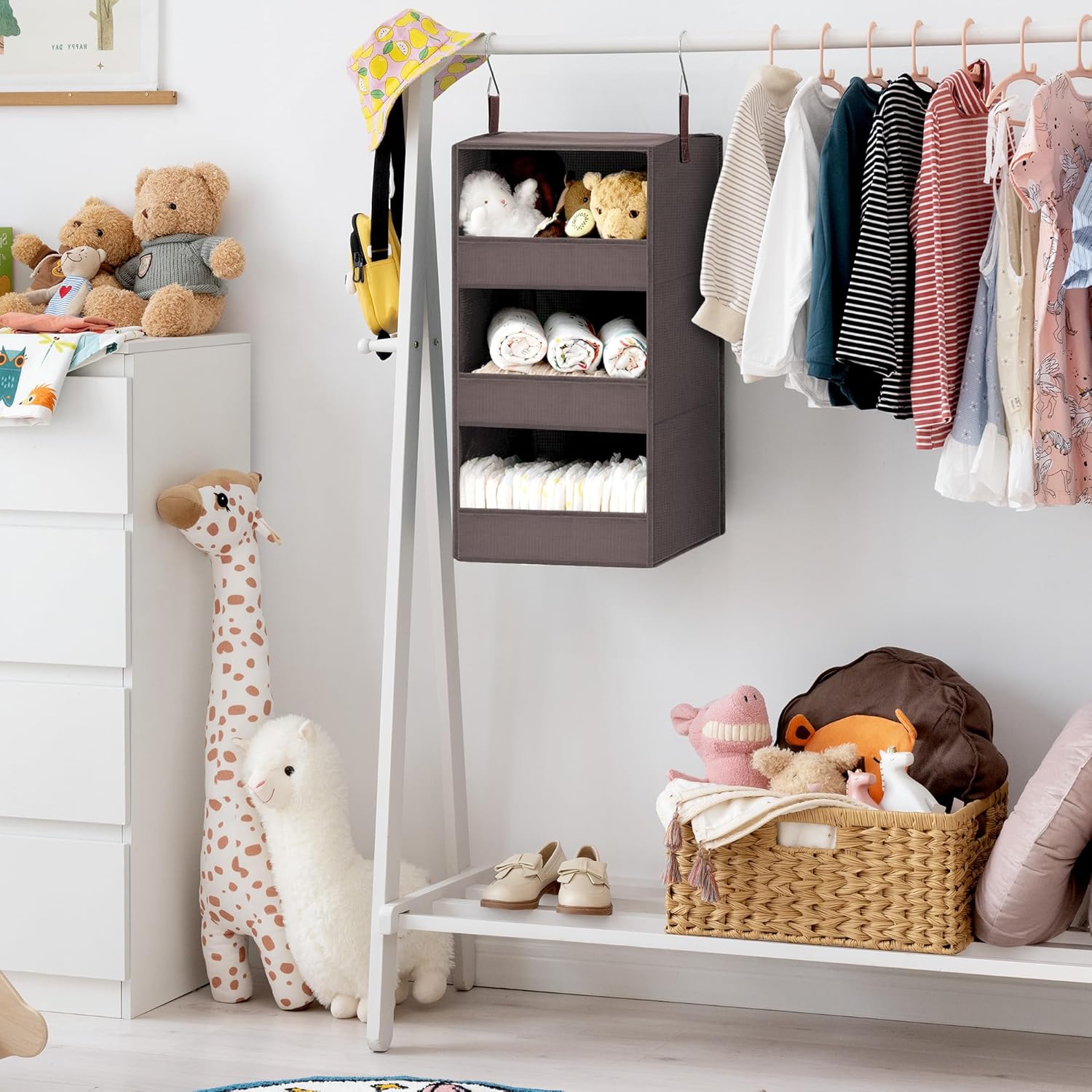 GRANNY SAYS 3-Shelf Closet Organizers and Storage, Foldable Hanging Closet Organizer, Hanging Closet Shelves with 2 Metal Hooks, Leak-Proof Hanging Shelves for Closet, Bedroom, RV, Camper, Dark Brown