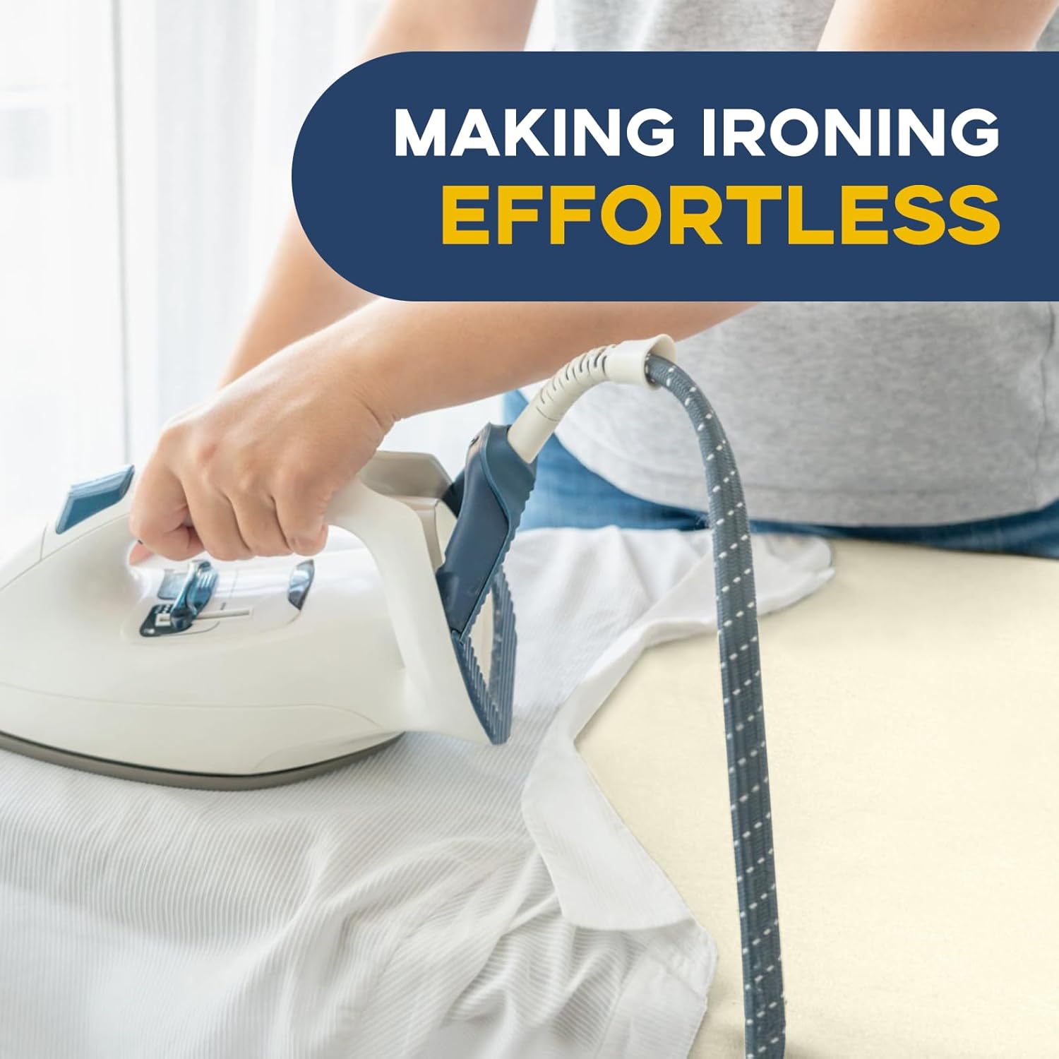 - Heat-resistant Cover: The ironing board cover is a 100% cotton cloth cover. It's removable, washable, and reusable, and it comes with two layers of 7mm thick pads made of fireproof fabric. The extra thick cloth cover ensures you an extraordinary ironing experience.