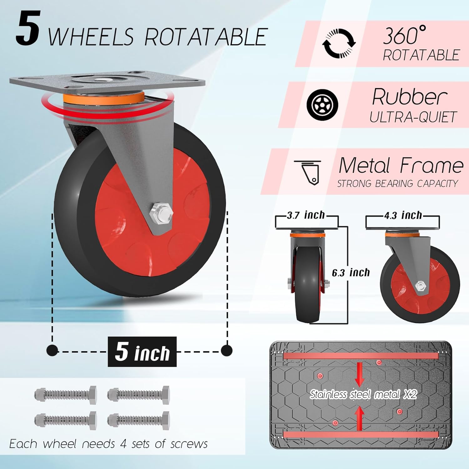 - 【Equipped with 5 Rotatable Wheels】 5 safe 5 -inch heavy wheels can provide 5 stress points, and the carrying capacity is stronger. Folding platform truck's 5 wheels are engineered with 360-degree swivel functionality, compared with the other 4 rounds of carts, there are only 2 wheels 360 -degree rotation, our 5 -wheeled carts are easier to turn during transportation. TPR wheels minimize harsh noise