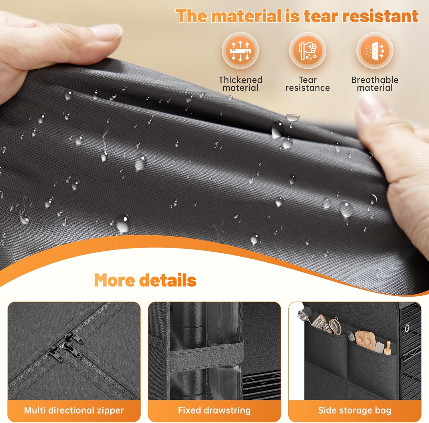 - Durable & Thickened Wire Shelf Cover๏ผREIBII shelf cover selected from black transparent PVC front and fabric sides. The design not only adds a touch of modernity to your storage spaces but also smartly balances transparency with privacy.