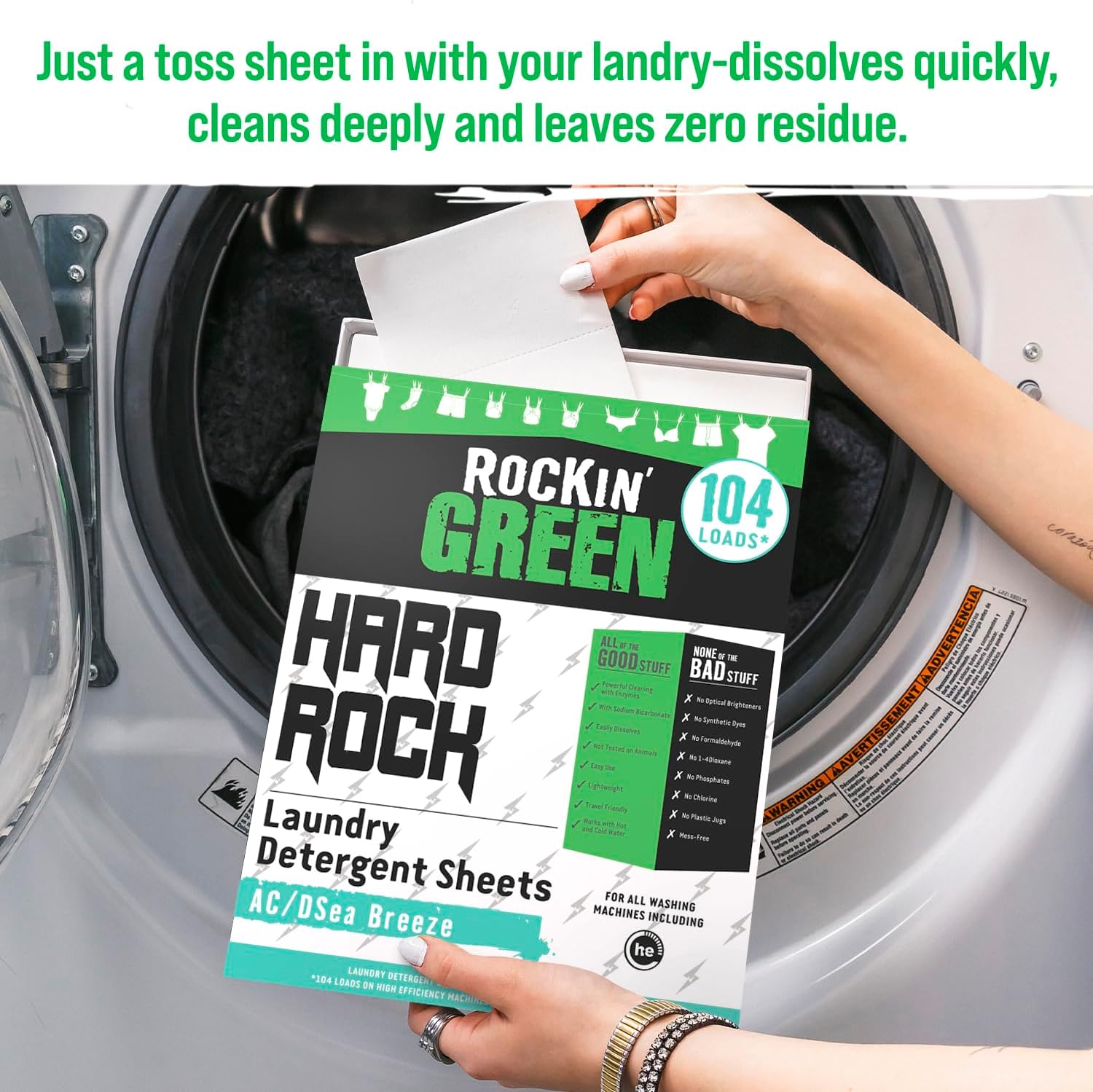 - Rock the Green Lifestyle – We are on a mission to create hardworking cleaning products to meet the demands of every family. Join the Rockin’ Green movement and enjoy safe and reliable eco friendly laundry detergent! If you are not satisfied with your purchase, contact our customer support, and we'll get back to you.