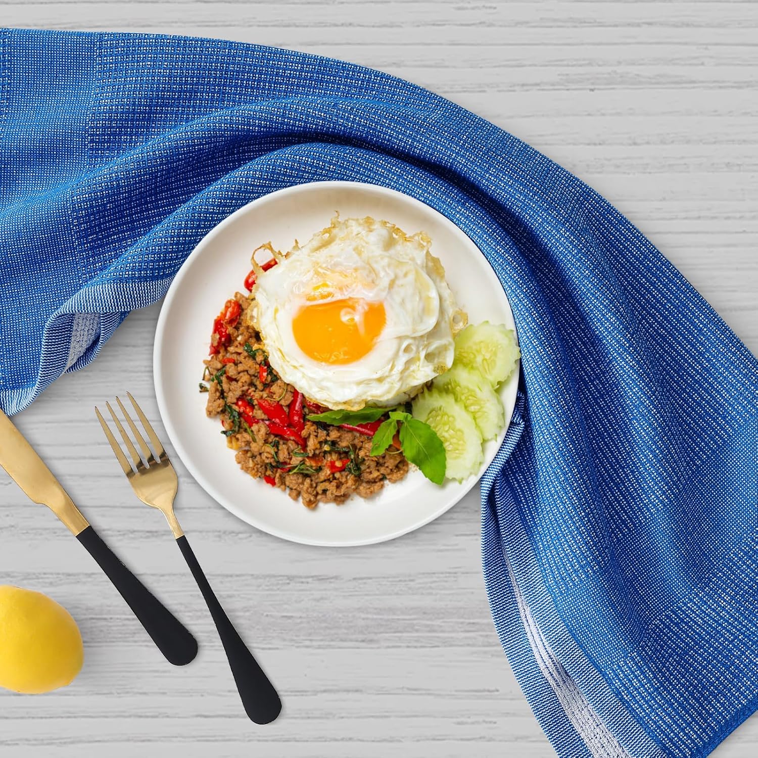 Homaxy Premium Kitchen Towels(18”x 28”, 6 Pack), Large Cotton Kitchen Hand Towels, Flat and Terry Dish Towels, 380 GSM Highly Absorbent Tea Towel Set with Hanging Loop, Blueberry