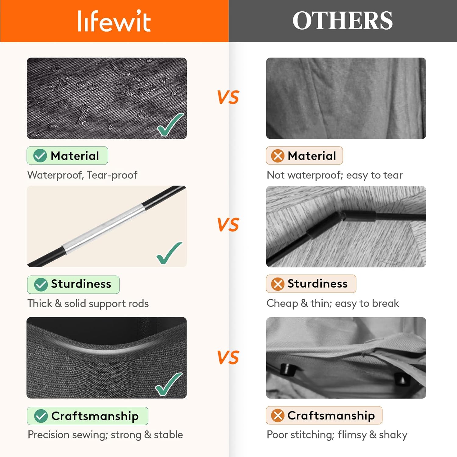 - Robust and Long-lasting: Made of premium cationic fabric with thickened polyester lining that is waterproof, odorless, and tear-proof for long-term use; four reinforced support rods and a thickened metal frame ensure a ultral stable structure for upright standing