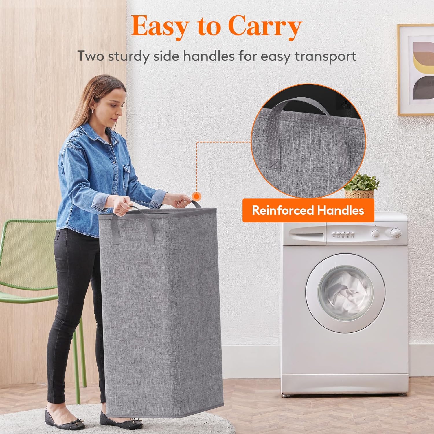 - Easy to Carry: Featuring two reinforced nylon handles, this dirty clothes hamper is a breeze to carry around, even when fully loaded; with a generous height of 29.5'', you can reach your ladunry without bending over