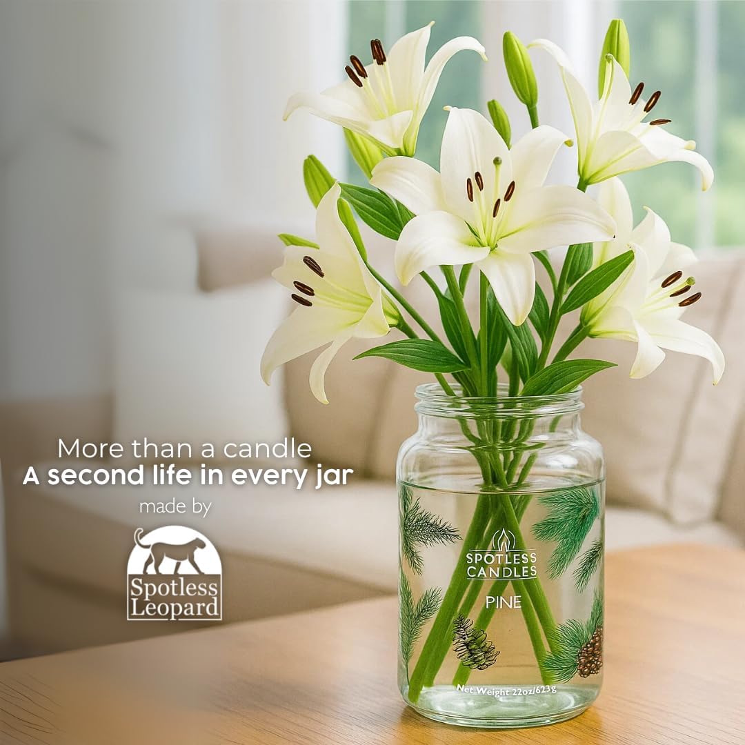 Pine Candle - Large 22oz Glass Jar with Wooden Wick 130 Hours Burn Time - Decorated Jar Within a Presentation Gift Box and Protective Shipping Box