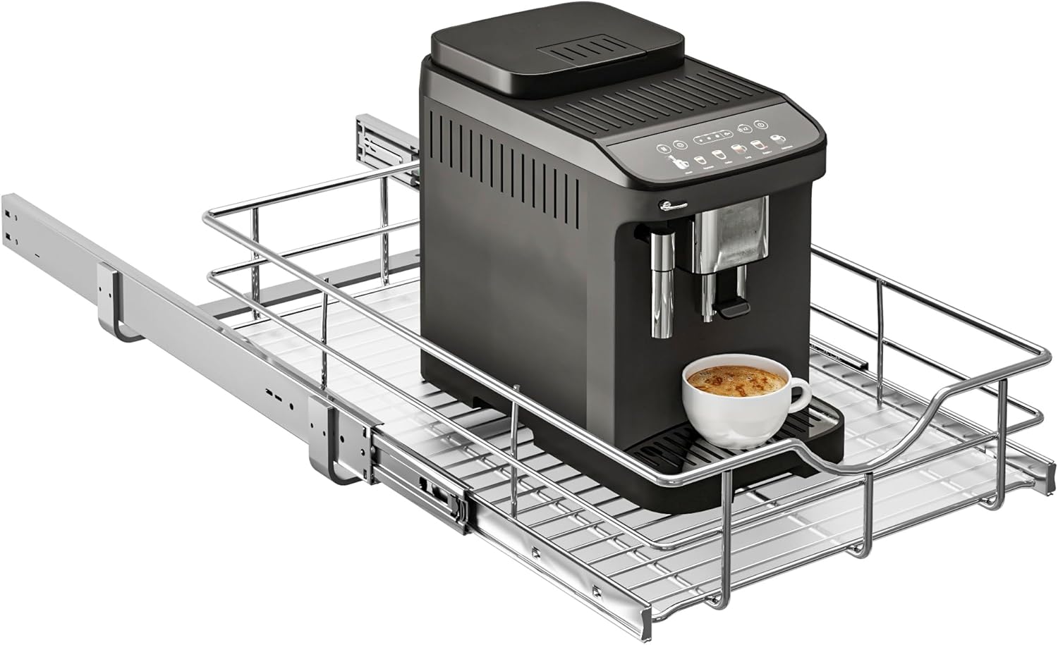 - 【Premium Material】This pull out cabinet shelf is made of high quality steel, heavy-duty and durable, load-bearing. The pull-out cabinet organizer offers a sturdy, noiseless, and smooth glide for easy access to kitchen essentials