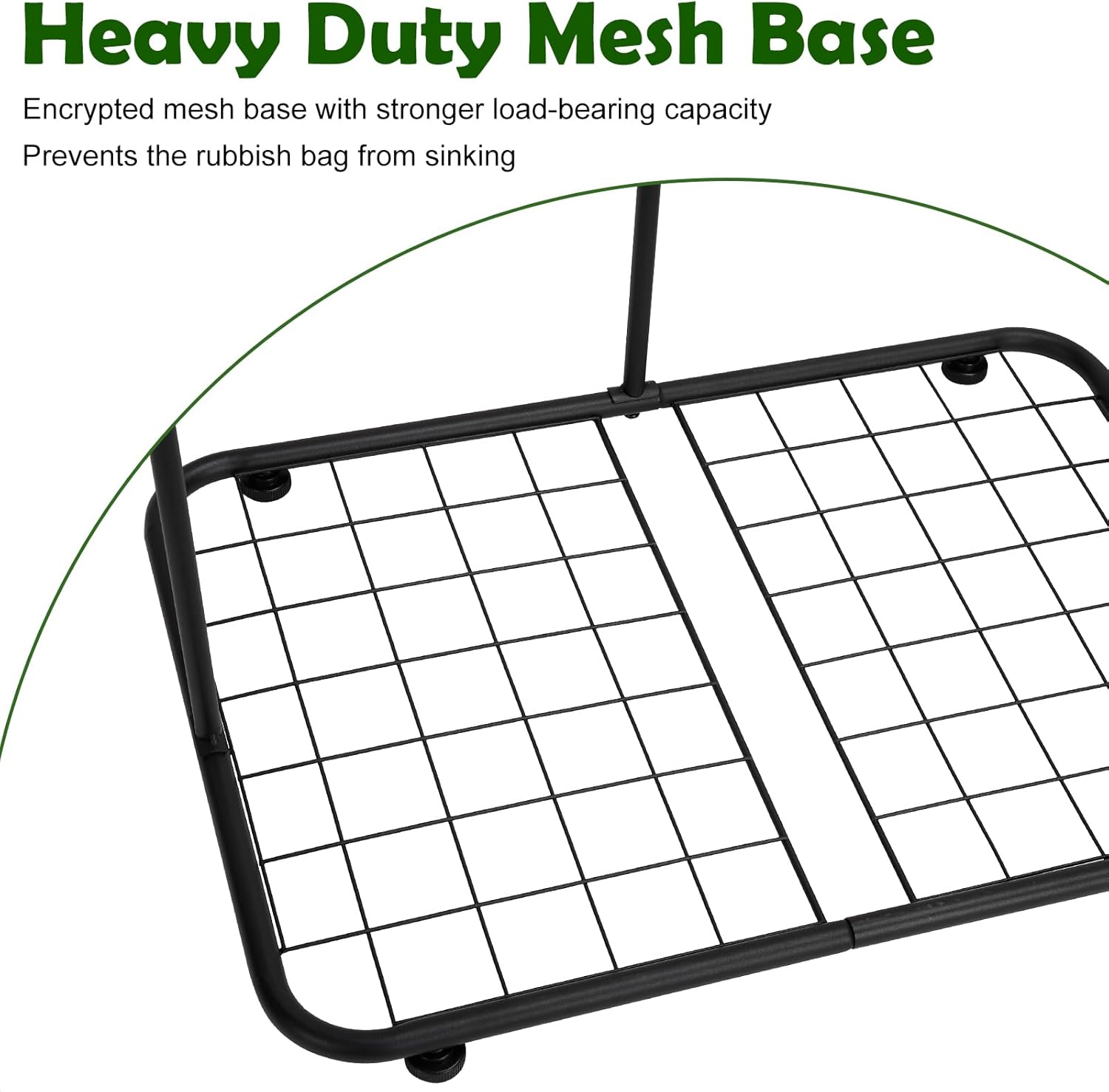 - 【Sturdy Trash Bag Holder】This garbage bag holder stand is made of black heavy-duty metal with an anti-rust coating suitable for outdoor use. It is dirt-resistant and rust-proof, ensuring that it remains sturdy and reliable even in harsh weather conditions. The encrypted mesh base design gives the garbage holder greater load-bearing capacity, making it more stable and preventing the garbage bag from sinking.