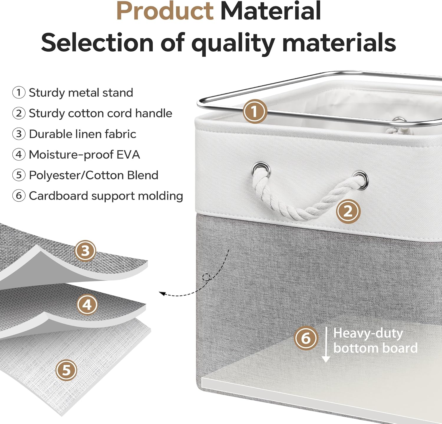 - 【Product upgrade】Upgraded version bins for cube storage specially add the hard cardboard on bottom to avoid the basket deform when you use,Closet cube organizer bins are reinforced with upper metal frame, keep the baskets upright. Both sides are equipped with strong cotton rope handles, the load-bearing capacity is more than 25 pounds, More sturdy and durable.