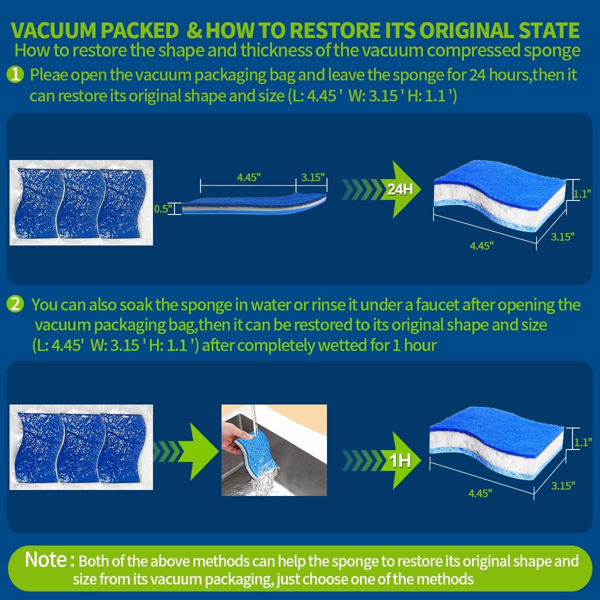 - 【Powerful cleaning】Dual-Sided Design: Each kitchen sponge features a dual-sided design,One side for High Density and cellulose sponge Which Can Clean the Dishes,Chopsticks And Plates with a small amount of detergent and the other for Blue Scouring Pad Can Easily Handle Various Stubborn Oil Stains,Provides versatile cleaning capabilities for various tasks.