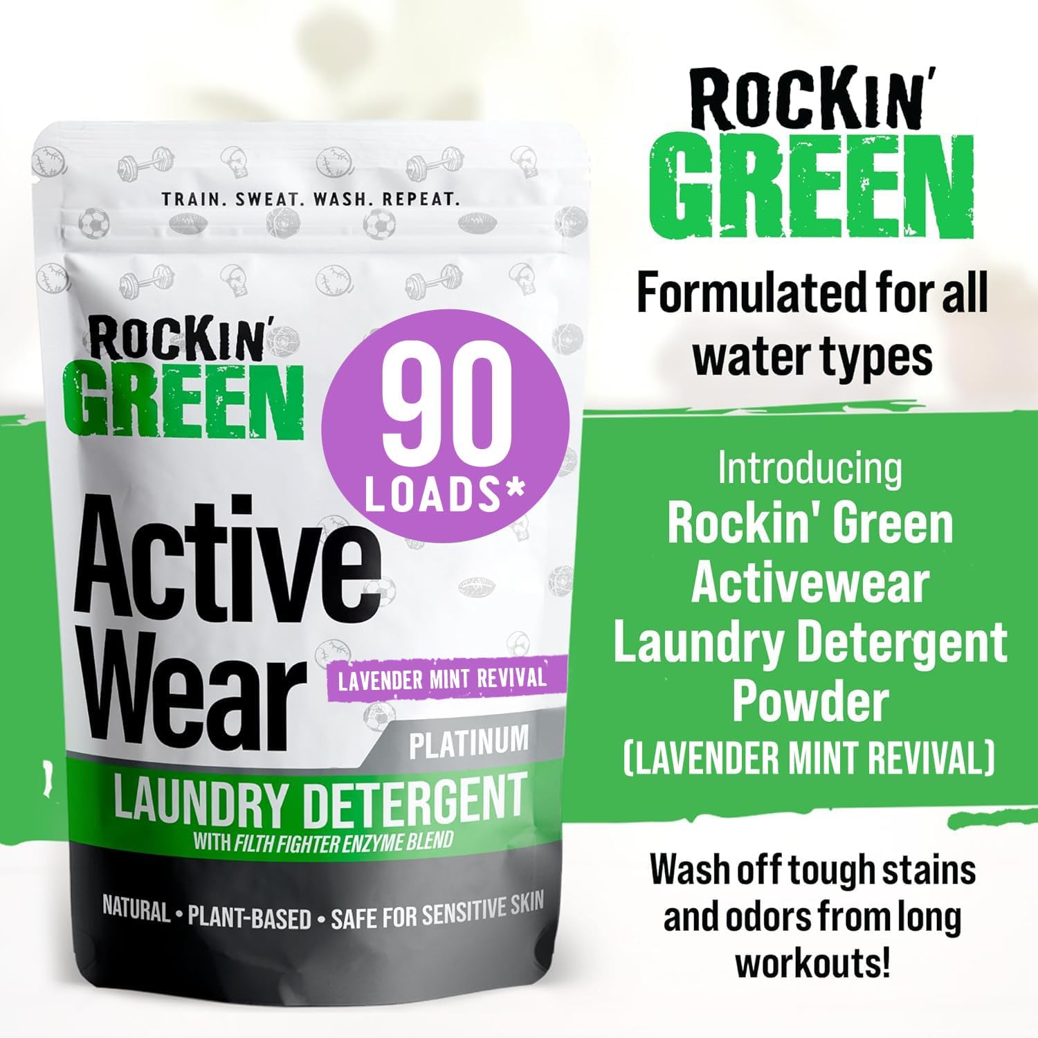 - Defeat Stubborn Stains and Odors - Rockin Green Activewear washing powder is formulated with powerful plant-based enzymes that break down even the toughest stains and odors from sweat. Enjoy clean and fresh workout gear, including leggings and gym shorts every time!