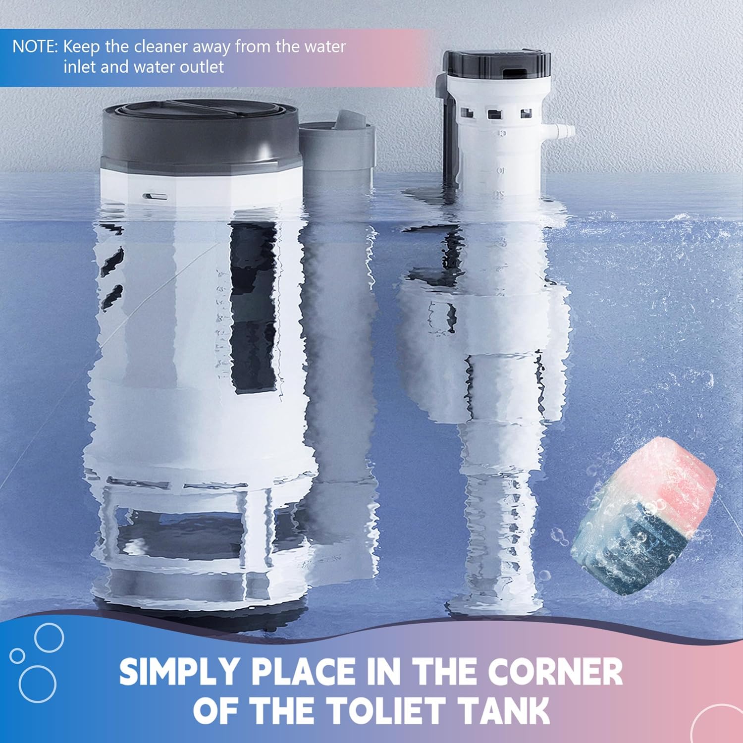 - Easy to Use: Simply place a piece of toilet tank cleaner tablet into the tank (away from the spout and inlet) and let it fully dissolve for at least 30 minutes;(Please note, do not remove the water-soluble transparent protective film)