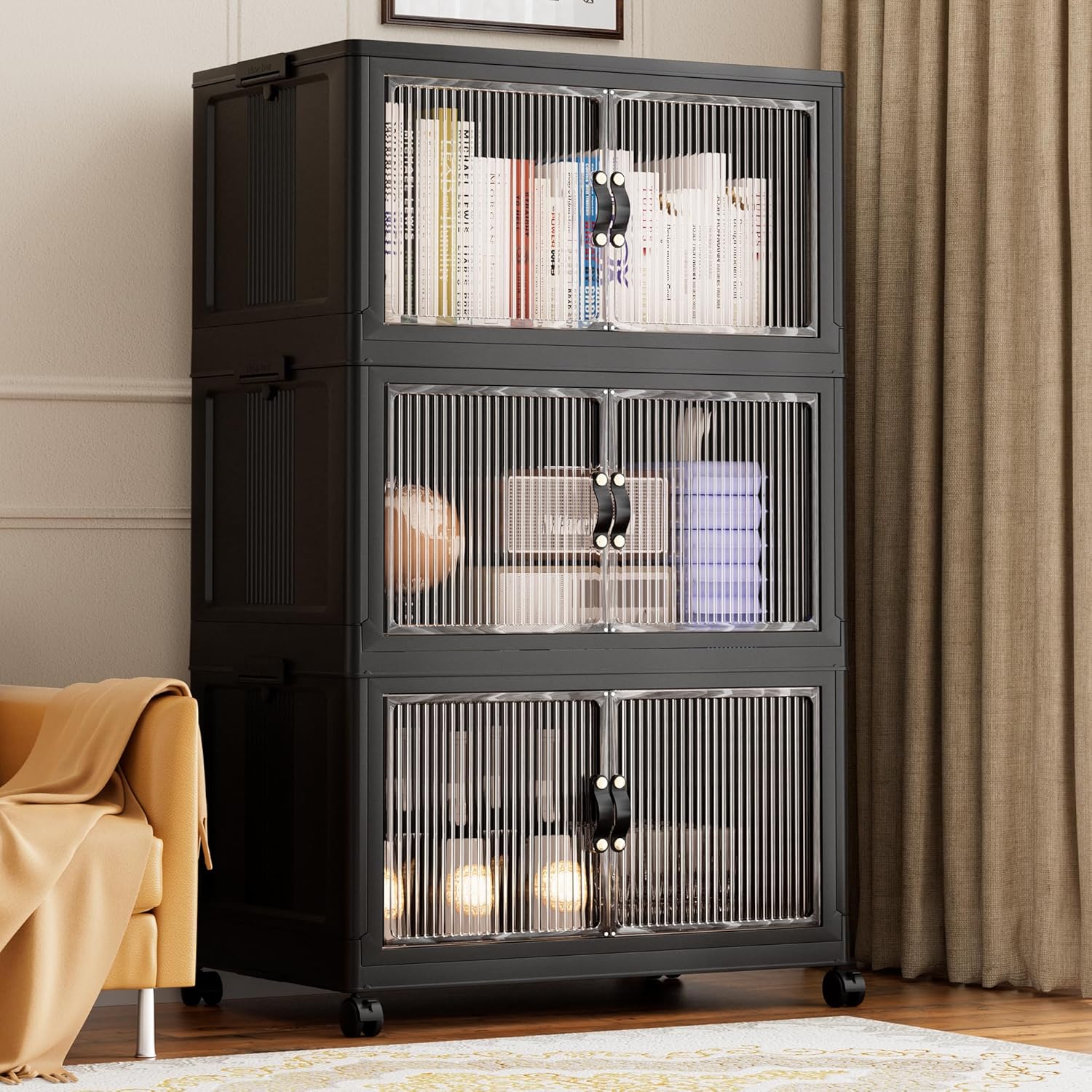 - 【High Quality & Safety】Made with high-impact polypropylene (PP), these bins ensure durability and protection for your belongings. The ABS front panel adds clarity and strength. They can also be used as a plastic storage cabinet with doors, offering extra convenience for organizing items.