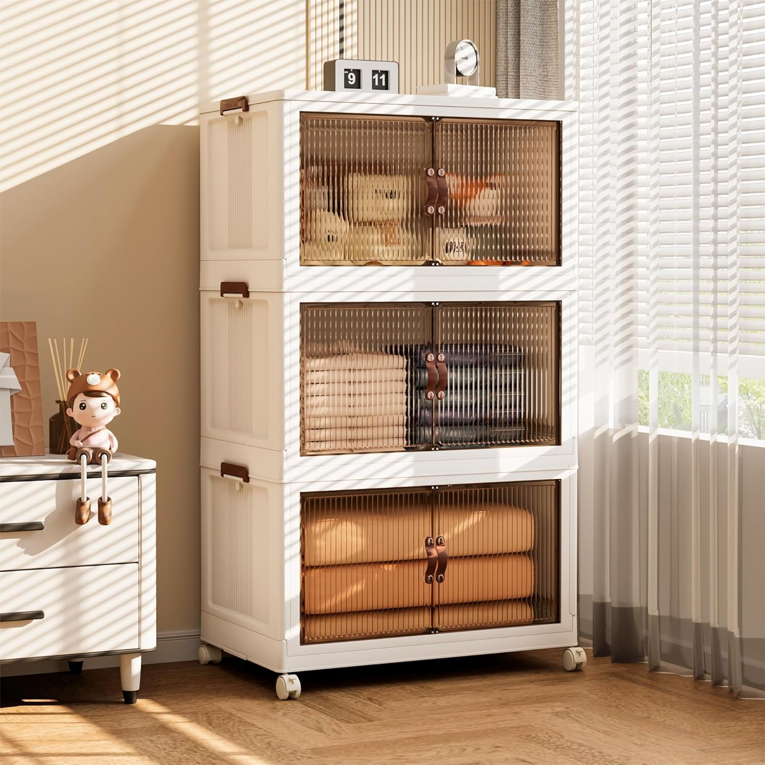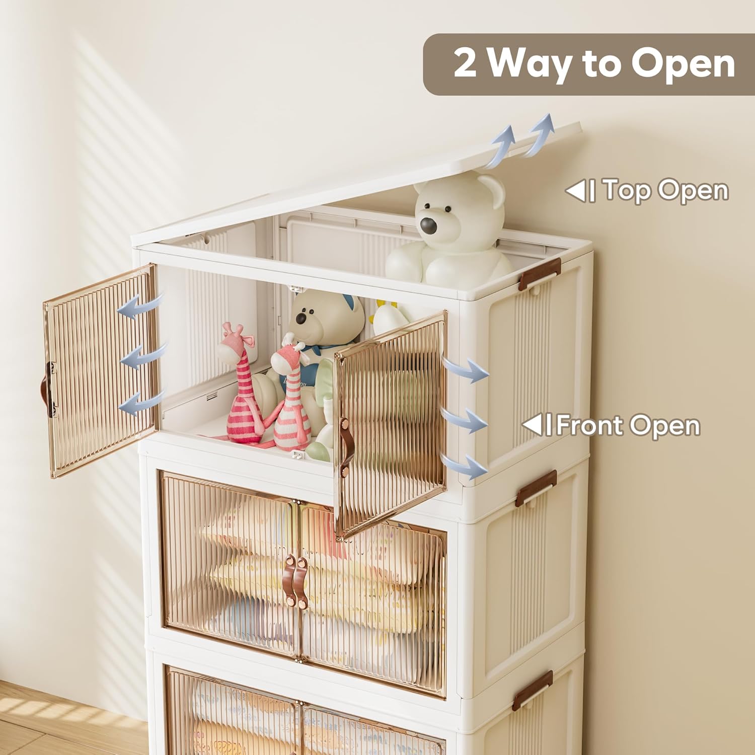 - 【Magnetic Doors & Rotating Wheels】The bins offer two opening options: front or top. The magnetic closure allows easy access. The 4 rotating 360-degree wheels make them easy to move, ideal for use in storage containers and closet organization in any room like your closet or bathroom.