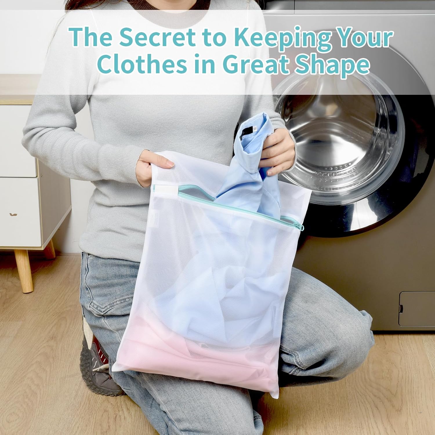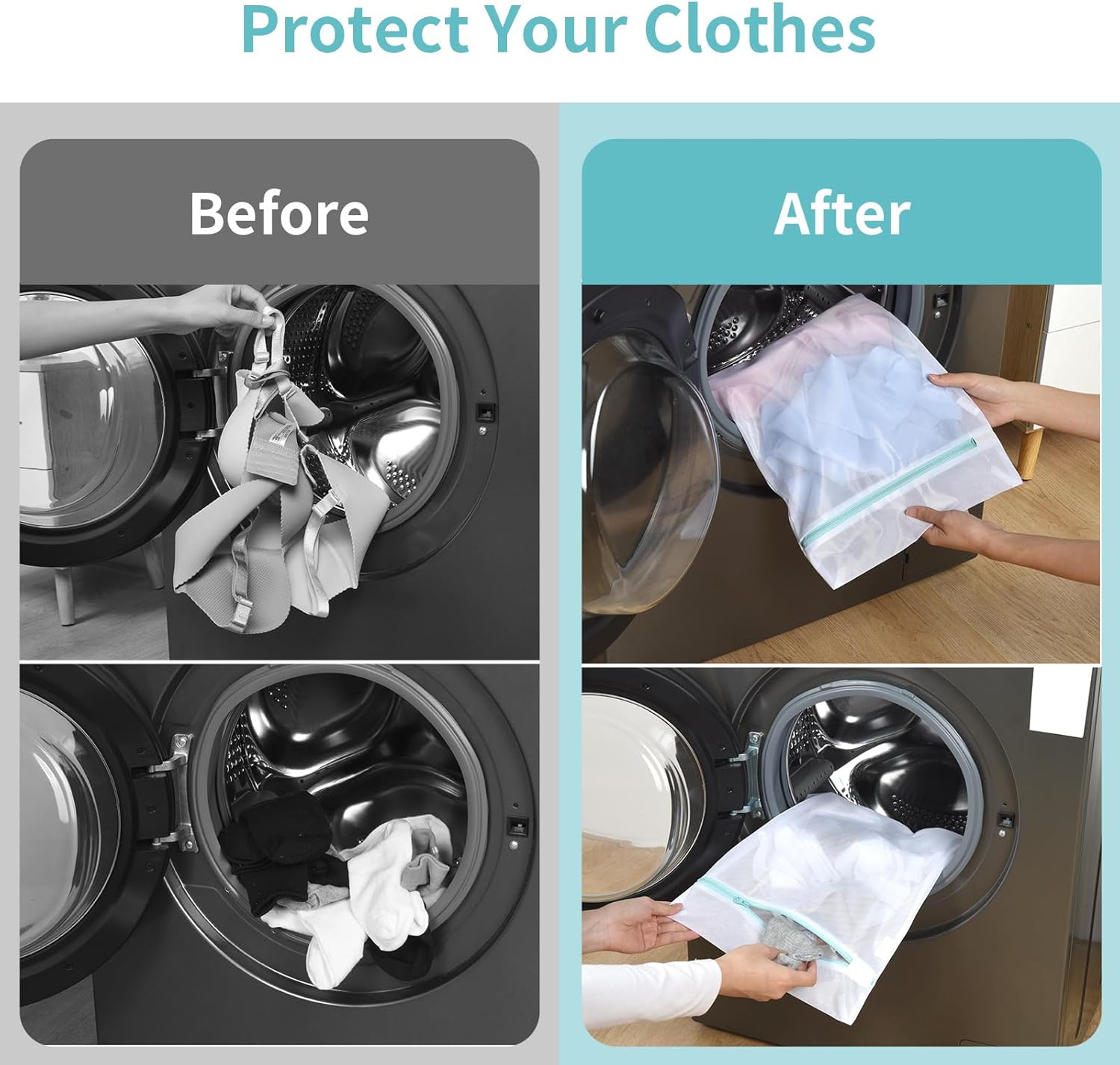 - PROTECT YOUR CLOTHING: Our garment bag for washing machine is the perfect laundry protector against wear and tear in the washing machine, preventing your clothes from getting tangled, snagged or deformed in the washer or dryer. NOTE: Please tuck the zip into the elastic band to prevent it from catching and unzipping during the wash and dry cycle