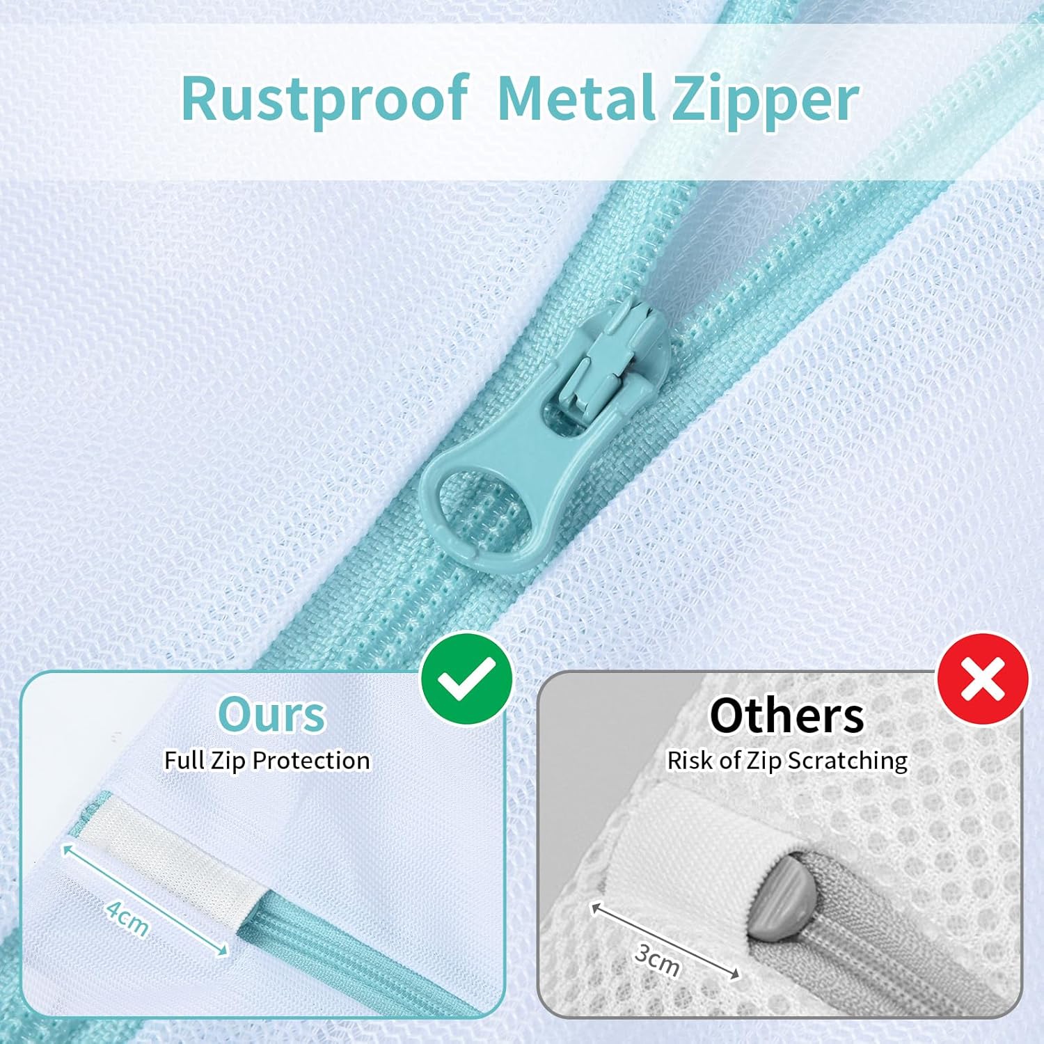 - UPGRADED METAL ZIPPER: This lingerie bags for washing delicates features a rust-resistant metal zipper, which is sturdy, durable, and easy to pull. Also designed with a 4cm elastic band that completely hides the zip and prevents the bra washing bags for laundry from accidentally opening during washing and drying, giving you a quiet, snag-free brand new laundry experience