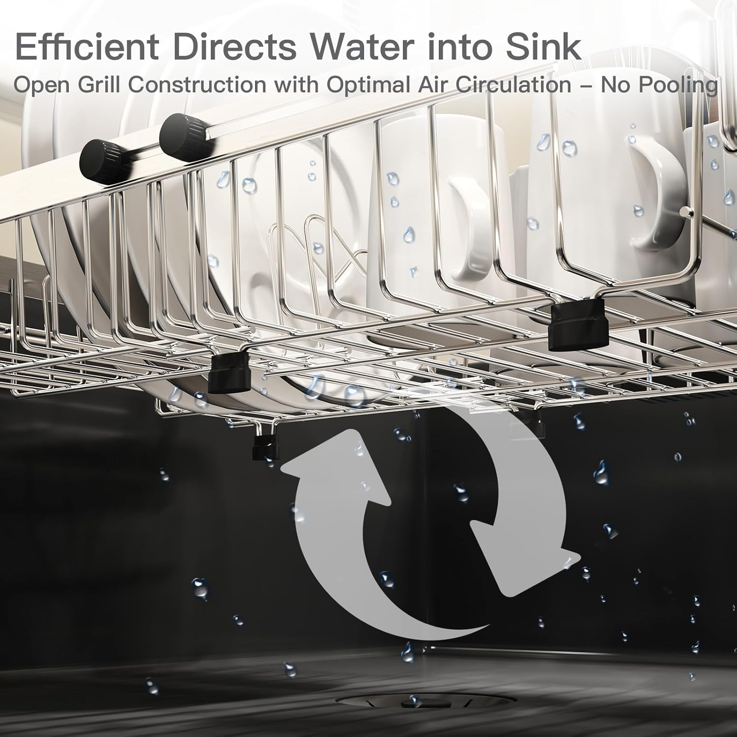 - 🛡️ Rust-Free Stainless Steel: Crafted for lasting stainless steel dish drying rack performance. Resists corrosion with no coatings to peel – ideal for daily dish drying rack use