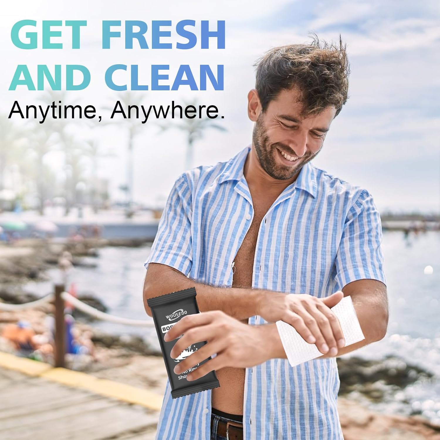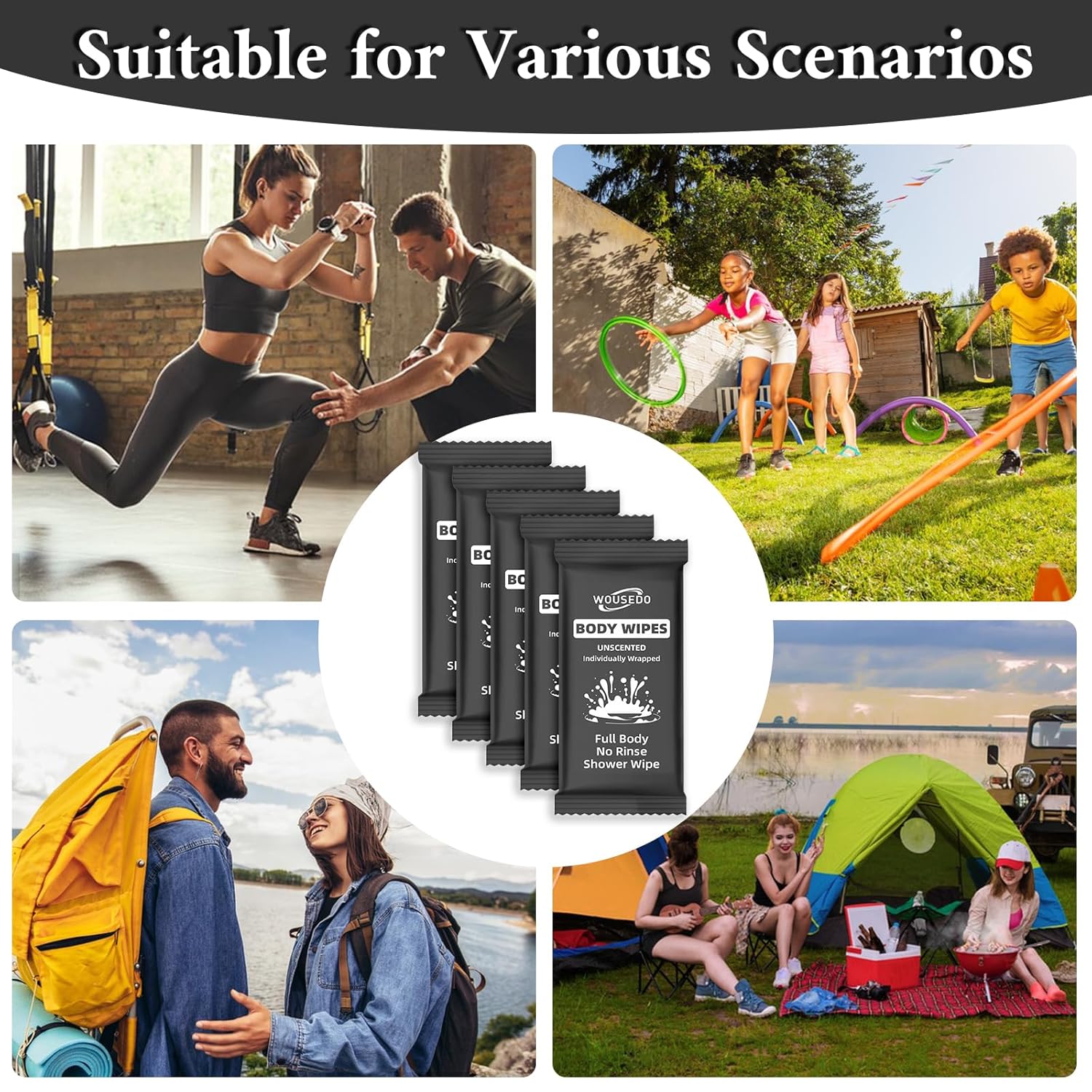 - Wide Applications: Our body wipes are suitable for all age groups and can be applied in a variety of scenarios. Whether you are traveling, camping, exercising, or just need a quick refreshment during the day, our shower wipes are always handy. They are a convenient and efficient cleaning solution that fits your active lifestyle, suitable for home, office, gym and other outdoor settings.